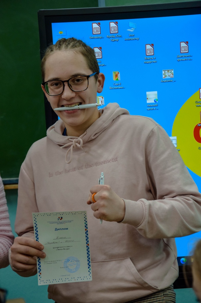 Именно поэтому 8 декабря на базе СГФ был проведен квест, посвященный Петру I. В нем приняли участие восемь команд с разных факультетов. Им предстояло пройти восемь этапов. На этапе «И грянул бой» участникам нужно было расставить события, изображенные на картинах, в хронологическом порядке. Ребятам пришлось вспомнить все, что они знали и, к слову, у них это отлично получилось. Еще один из этапов назывался «Семейное древо Петра Первого». Студентам было необходимо положить фотографии в конверты, на которых были указаны члены семьи (мама, брат и т. д.). С этим заданием участники тоже справились. На этапе «Сподвижники Петра» ребятам было предложено сопоставить портреты приближенных императора с характеристиками, которые им принадлежат. На данном этапе те, кто участвовал, могли проверить свое чутье на талантливых и амбициозных современников Петра Первого.
