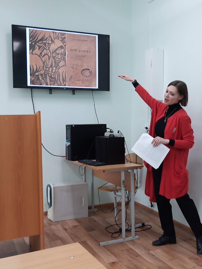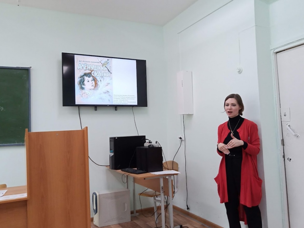 28 марта в рамках дисциплины «Литература Урала» студенты группы Нт-502о РЛТ продолжили знакомство с произведениями Д. Н. Мамина-Сибиряка, но в необычной форме. На занятие была приглашена Ксения Геннадьевна Баданина – научный сотрудник Нижнетагильского музея изобразительных искусств. В качестве научного направления Ксения Геннадьевна выбрала книжную графику, иллюстрацию, «совместив» два своих образования – филологическое и искусствоведческое.
