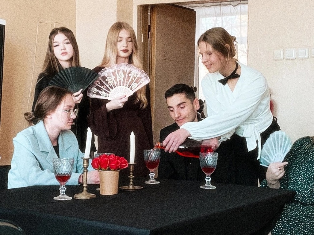 Хочется отметить, что с каждым годом студенты ФФМК все больше раскрываются во время подобных мероприятий. Они создают оригинальные сценарии театральных версий, готовят антураж спектакля (декорации, костюмы), продумывают музыкальное сопровождение. В данной версии «Маскарада» можно уже отметить интересные сценические решения, использование освещения, работу с масками.