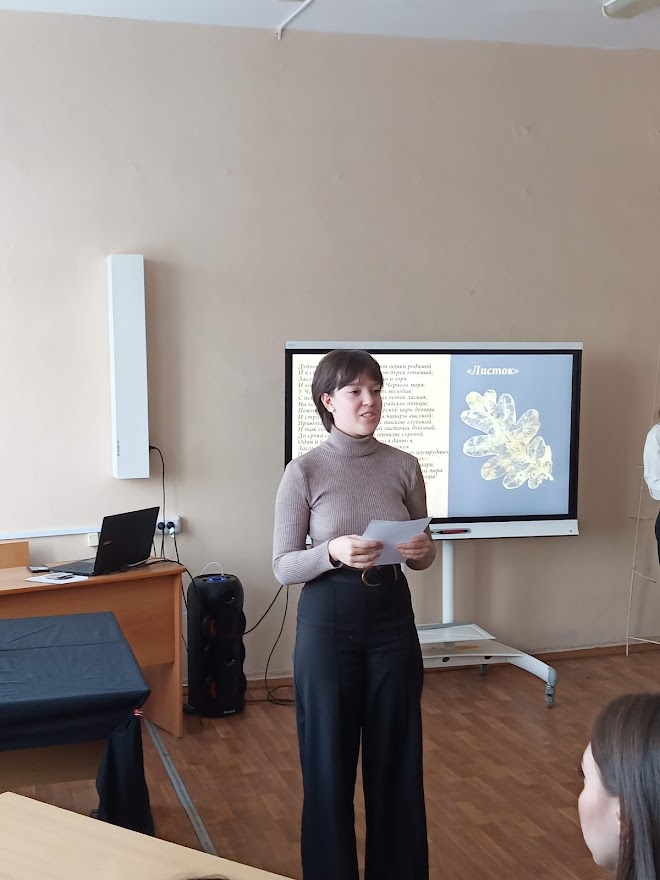 Мероприятие, посвященное творчеству М. Ю. Лермонтова, оказалось ярким, запоминающимся и очень содержательным! Оно началось со знакомства с биографией поэта. С самого начала ведущие увлекли слушателей, представив множество интересных фактов о жизни и творческом пути Михаила Юрьевича. Гости вечера узнали о его детстве, образовании, творчестве и последних годах жизни. Подробно были затронуты самые известные произведения Лермонтова, такие, как «Герой нашего времени» и «Мцыри». Повествование сопровождалось выразительным чтением стихотворений Михаила Юрьевича студентами 2 курса, а также прослушиванием музыкальных композиций знаменитых авторов, которые обращались к стихам поэта. Особое впечатление произвела подготовленная презентация, которая сопровождала выступление и помогала зрителям лучше понять Лермонтова и его эпоху.