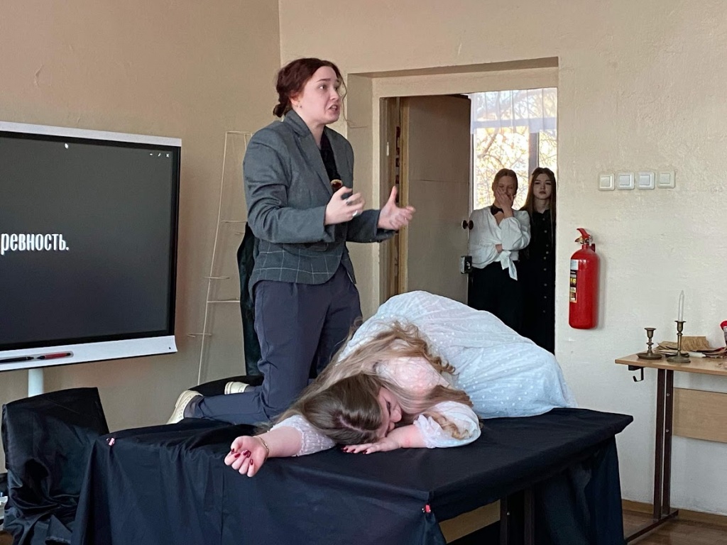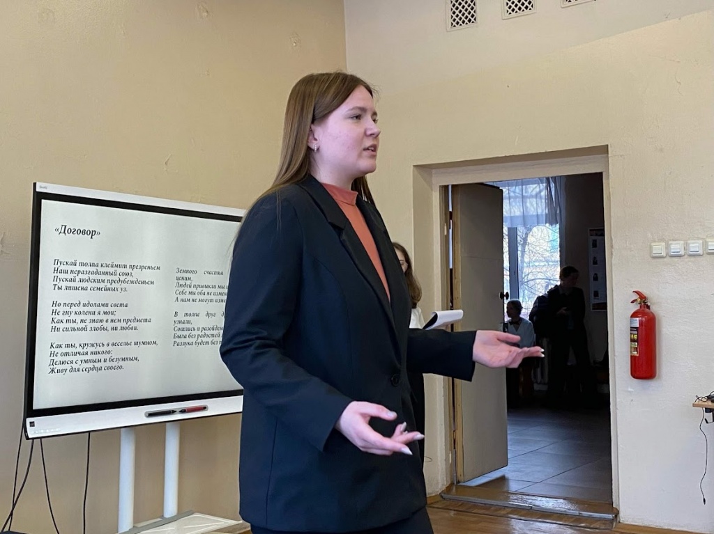 Следующей частью программы стала командная игра, в которой участники с большим энтузиазмом отвечали на вопросы о творчестве Лермонтова. Приятным сюрпризом стали уникальные призы – наклейки, посвященные произведениям поэта, которые мотивировали участников и подарили дух соперничества.