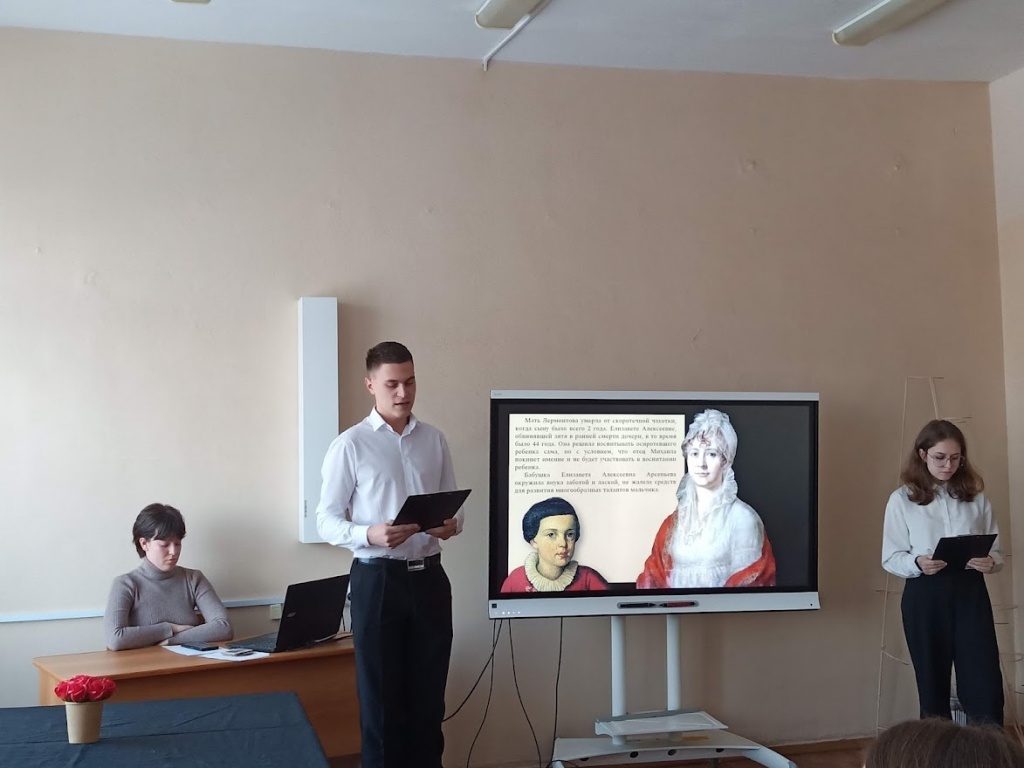 7 ноября на факультете филологии и межкультурной коммуникации состоялось мероприятие, приуроченное к 210-летию великого русского поэта и писателя Михаила Юрьевича Лермонтова. Подобные литературные вечера уже стали хорошей традицией факультета. На этот раз инициатива проведения мероприятия исходила от самих студентов, в частности, от группы Нт-301о РЛДО. Также в организации и проведении вечера участвовали студенты группы Нт-202о РЛДО.