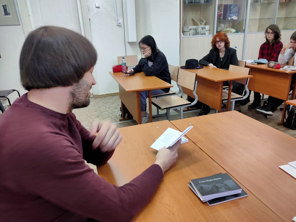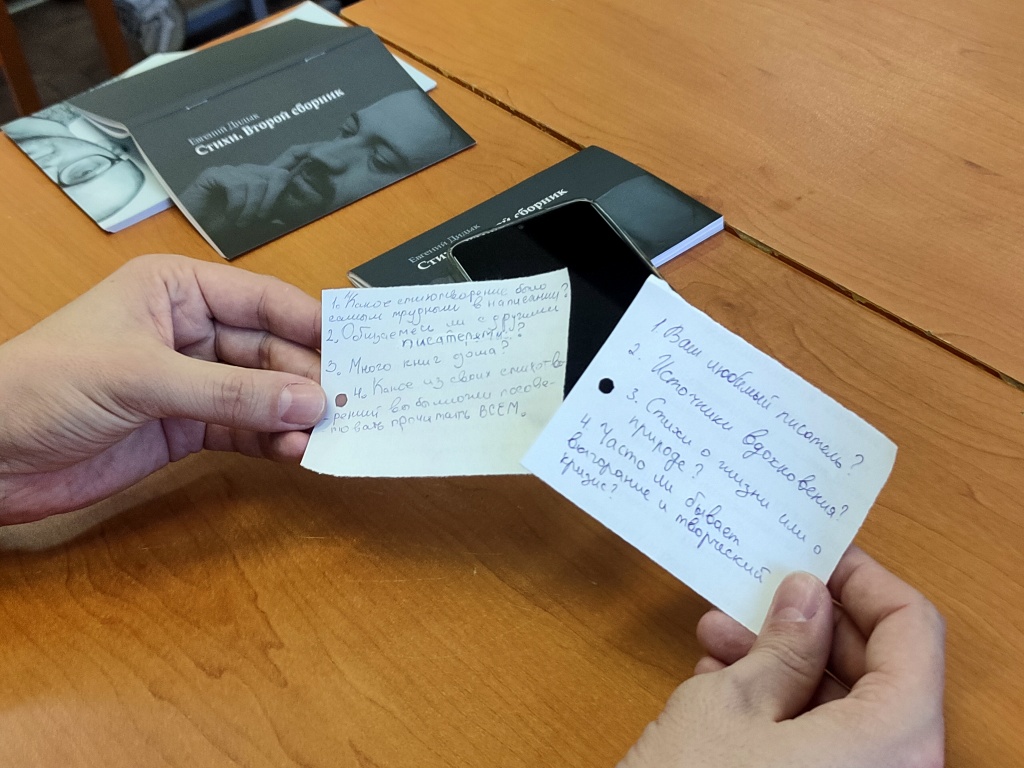 Евгений представил два сборника своих произведений, рассказал о своем участии в поэтическом конкурсе «ФилатовФест» (Москва), а также о своих литературных проектах.