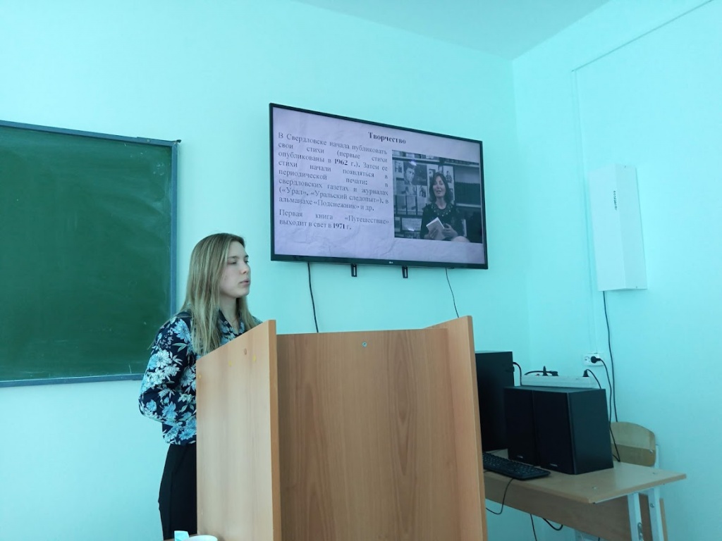 14 марта студенты группы Нт-502о РЛТ делились впечатлениями о творчестве различных уральских поэтов. Литературная гостиная, посвященная поэтам Урала, второй раз проводится на ФФМК в рамках изучения дисциплины «Литература Урала».