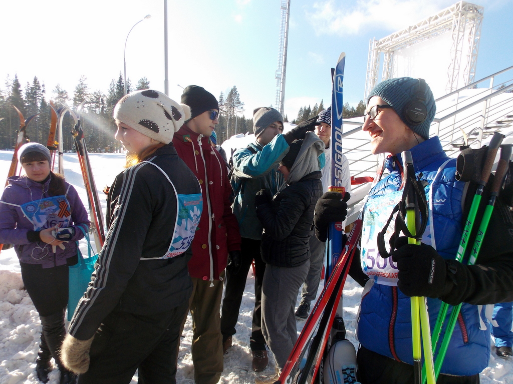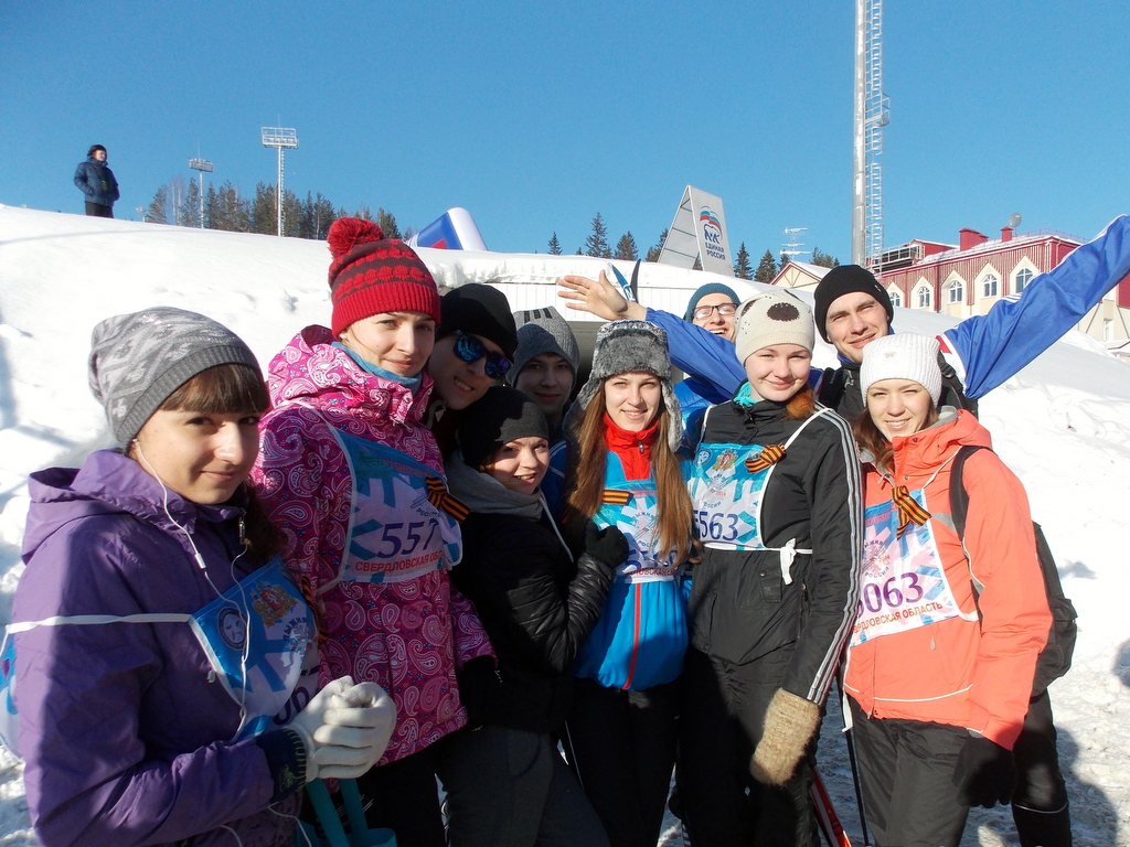 «Лыжня России» была посвящена 70-летию Победы. Звучали песни военных лет, многие участники, в том числе и наши студенты, прикрепили к номерам георгиевские ленточки.