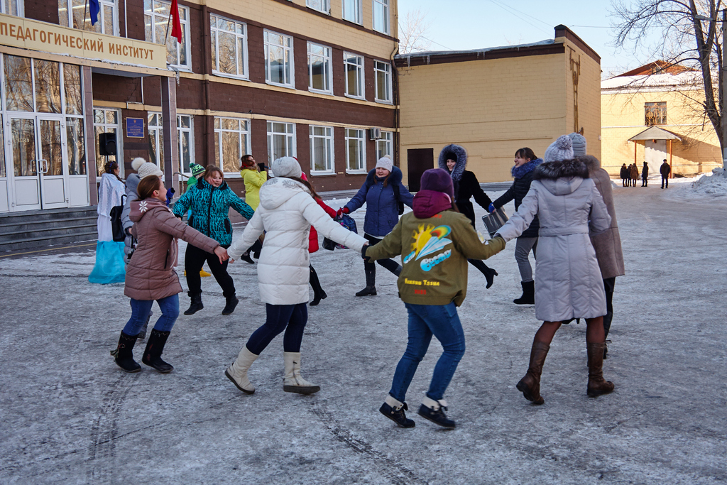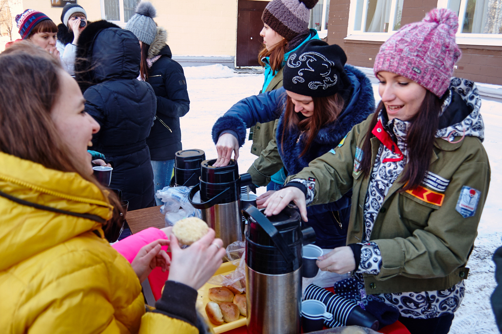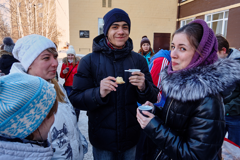 В 14:30 Л. Е. Егорова, директор филиала РГППУ в городе Нижний Тагил, торжественно открыла гуляния. Веселые аттракционы, блины, крендели и горячий чай – все это ожидало активных участников проводов зимы.
