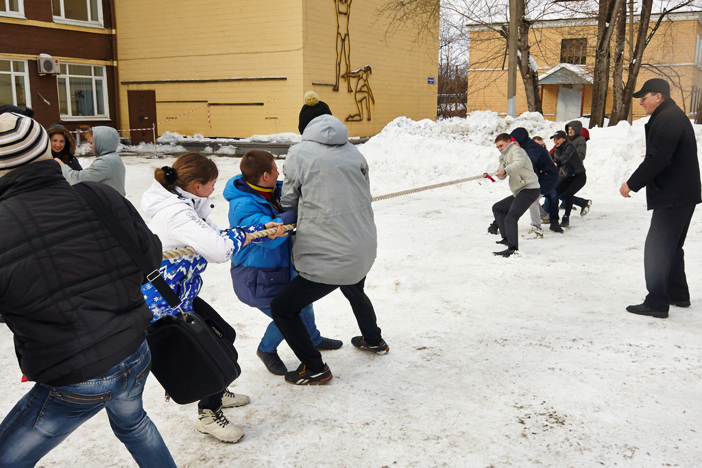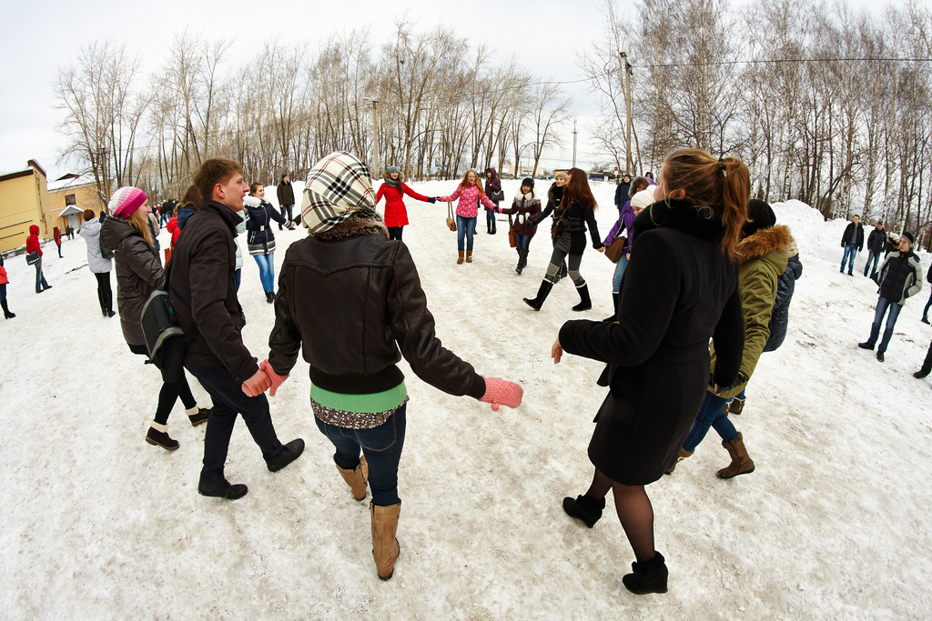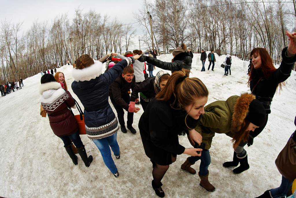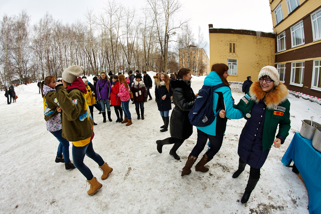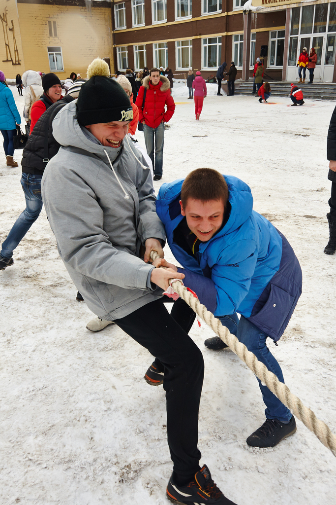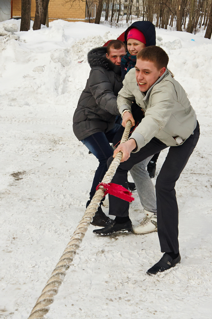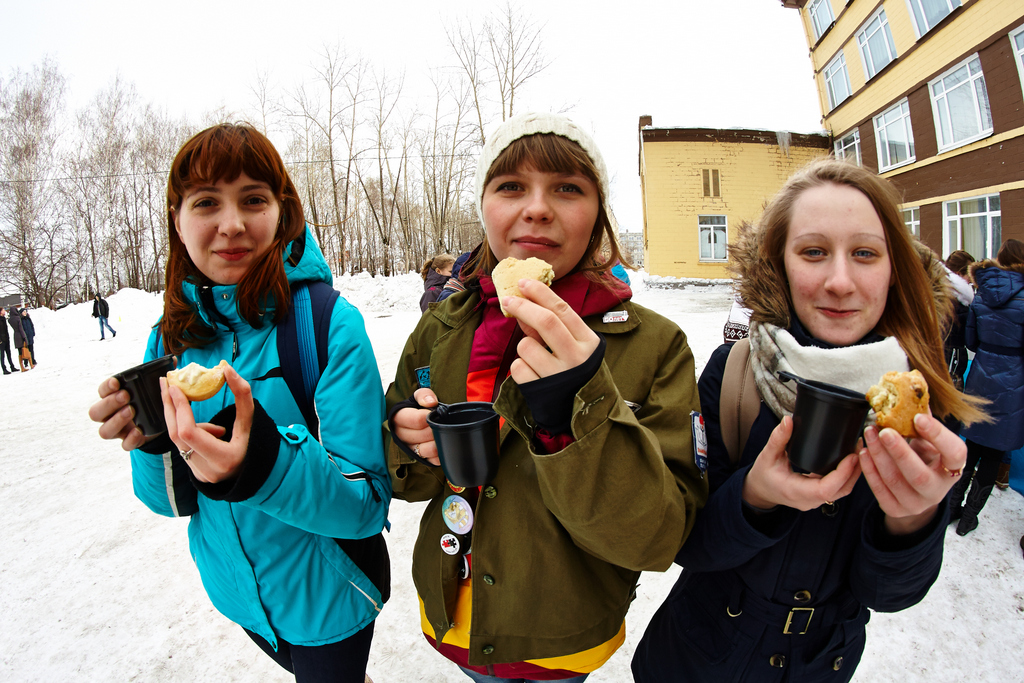 Факультеты приготовили самые разнообразные масленичные забавы: взятие крепости, перетягивание каната, игра в снежки, вождение хоровода, игры в вышибалы, фотографирование с Масленицей.