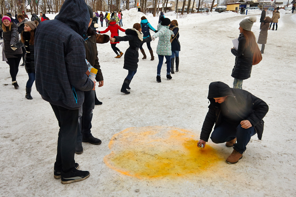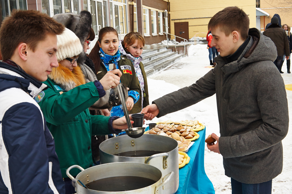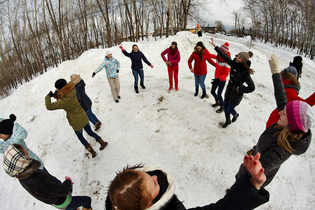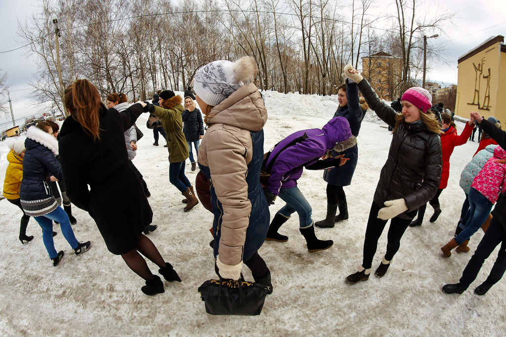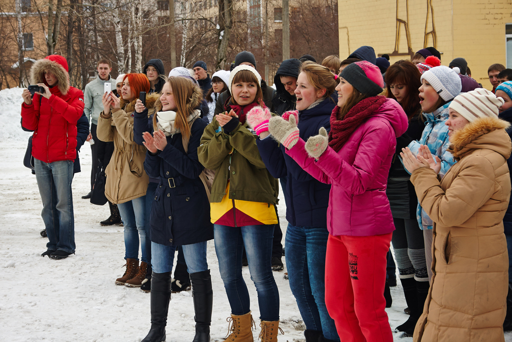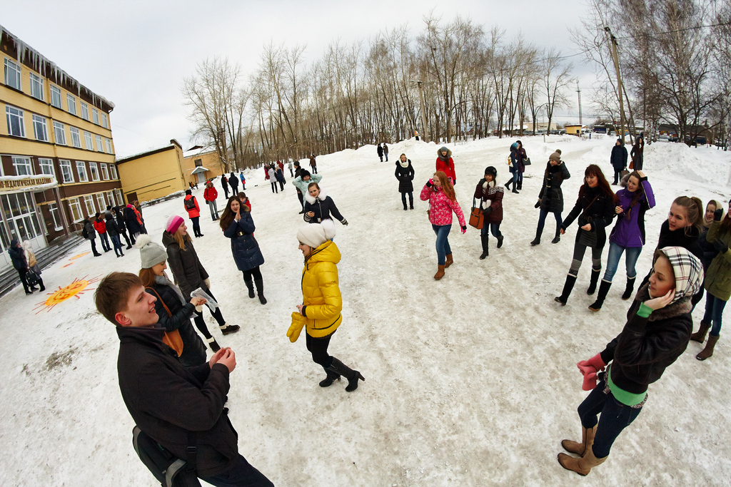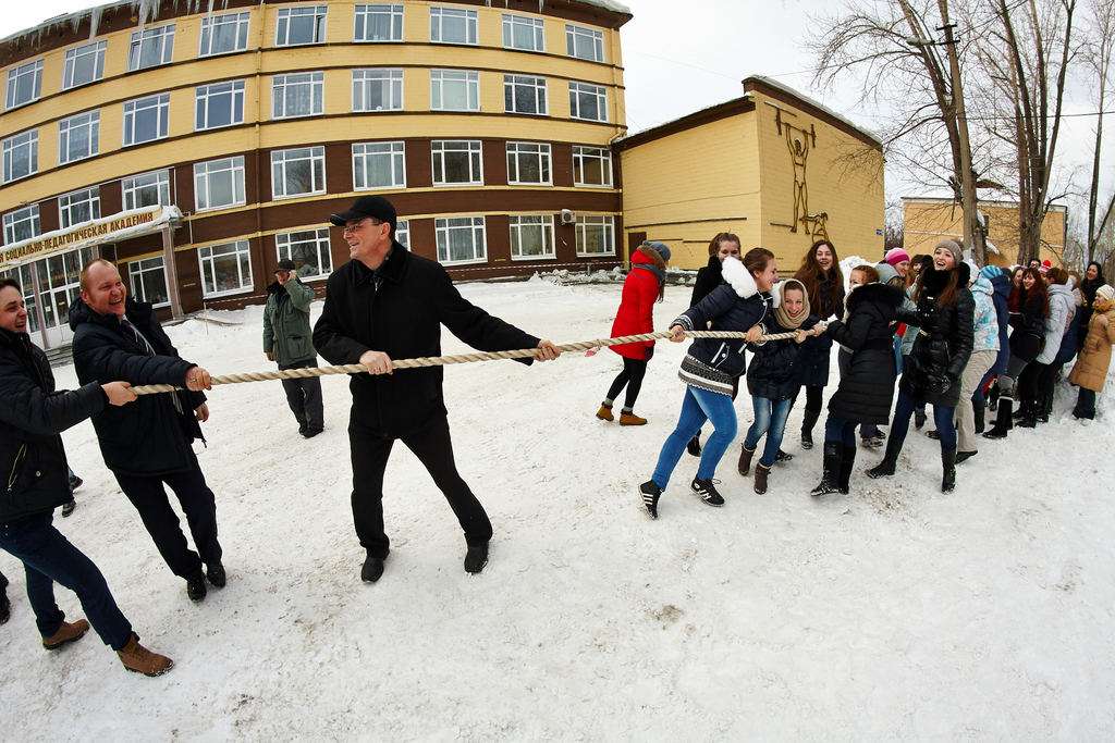 Факультеты приготовили самые разнообразные масленичные забавы: взятие крепости, перетягивание каната, игра в снежки, вождение хоровода, игры в вышибалы, фотографирование с Масленицей.