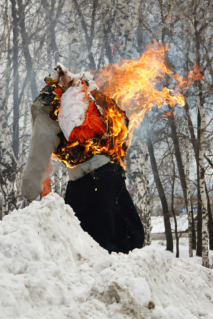 «Зиму провожаем, а весну встречаем!» – с этими словами зажигали чучело, которое символизирует суровую зиму. Сжигание чучела на Масленицу – один из древнейших обычаев, его корни в тех далеких прошлых временах, когда славяне поклонялись языческим богам. Чучело масленицы олицетворяло древнее божество. Считалось, что его сожжение и последующее развеивание пепла по полям принесут великолепный урожай, а вместе с ним и всеобщее благоденствие.