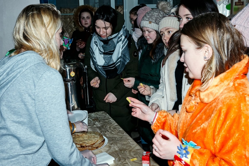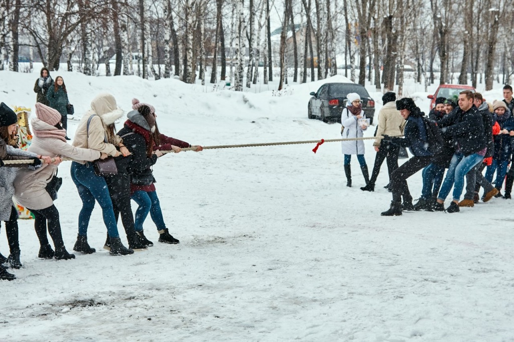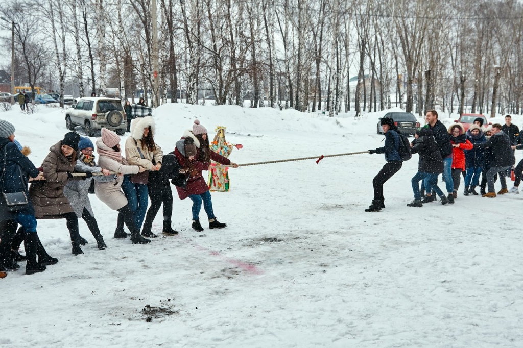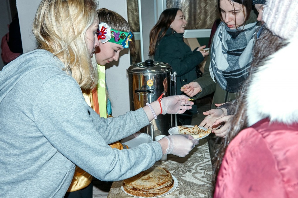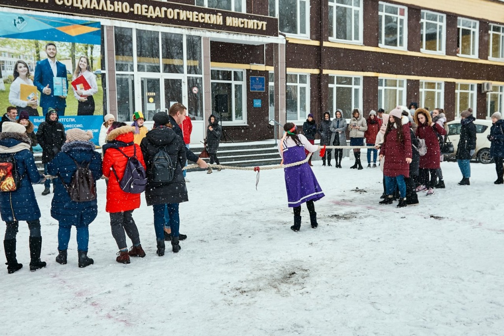 Гостям праздника, детям, было очень интересно участвовать в развлечениях. Еще бы! Ведь такие забавы, как перетягивание каната, веселые хороводы с песнями и плясками и сжигание снежной бабы – зрелище захватывающее! После развлечений в фойе института всех ждали горячий чай и очень вкусные блинчики.