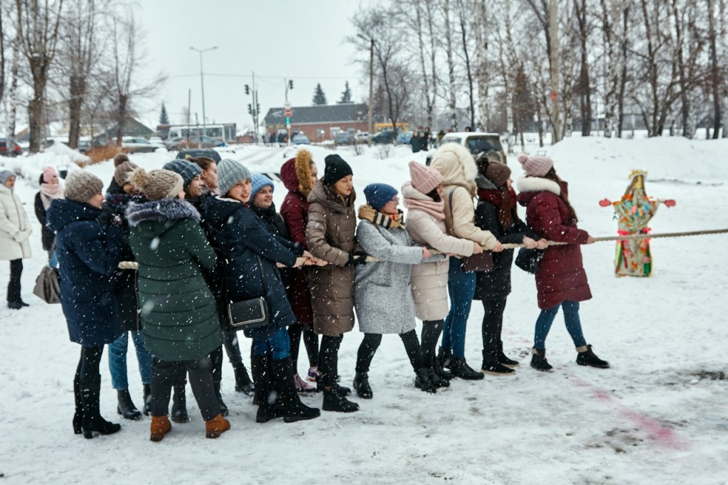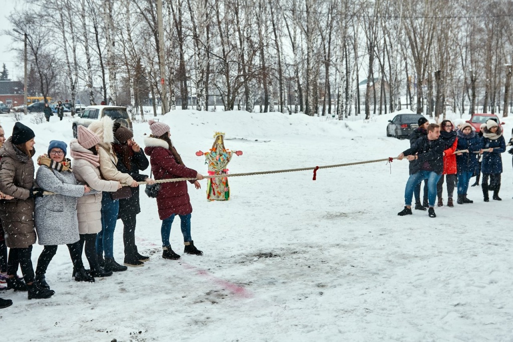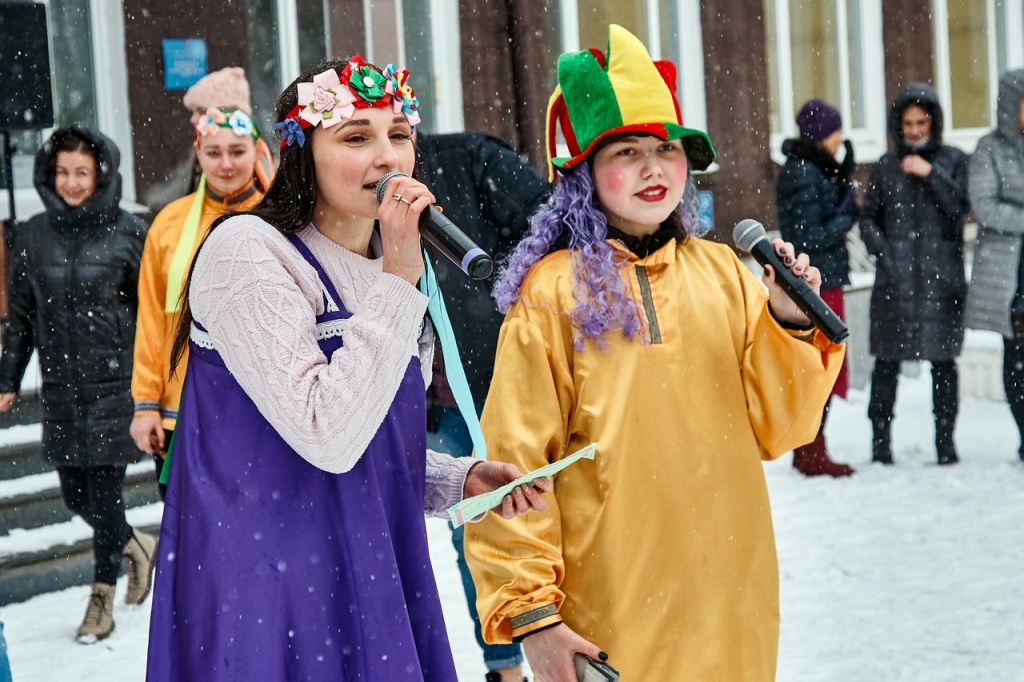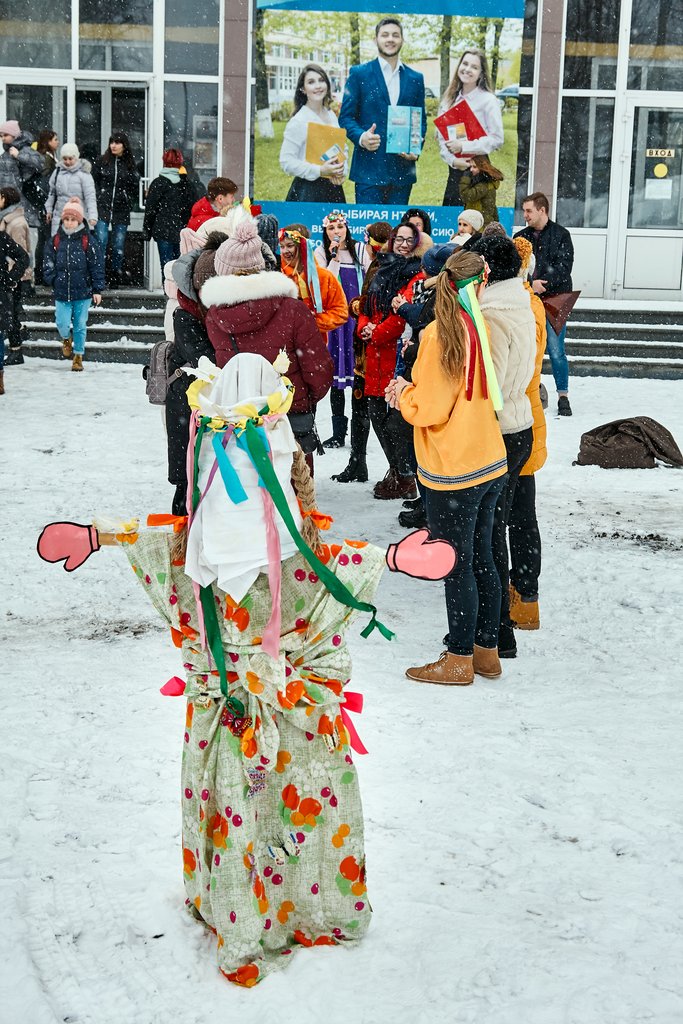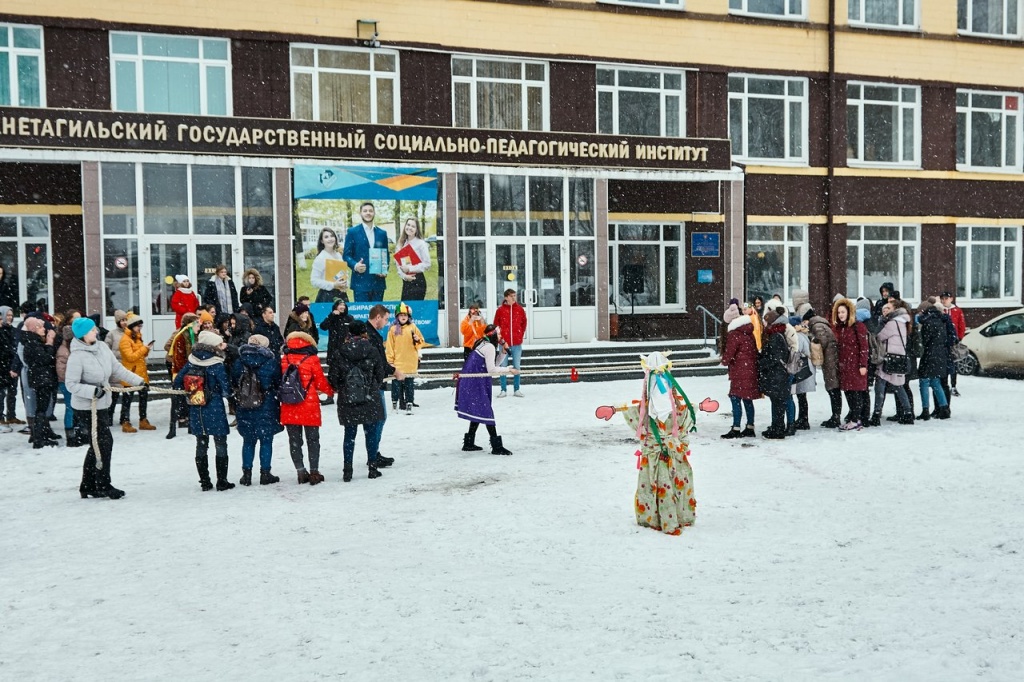 В минувшую пятницу на площади перед НТГСПИ студенты, преподаватели и сотрудники вуза праздновали окончание масленичной недели и с радостью провожали зиму. Управлением воспитательной работы и Объединенным советом обучающихся были организованы снежные забавы, пляски и игры, а задорные скоморохи, исполнявшие частушки, поднимали всем настроение. Погода благоприятствовала веселью: светило солнце, а снег, который все это время падал на землю, создавал волшебную атмосферу.