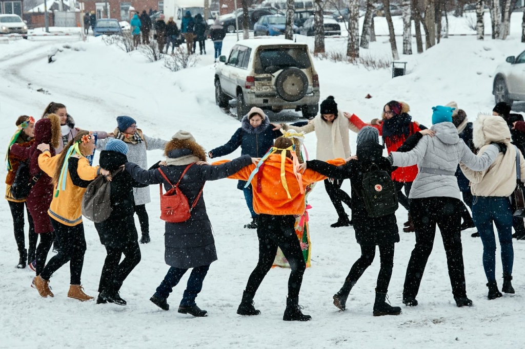 Проводы зимы сопровождались исполнением веселых русских народных песен, под которые студенты продолжали танцевать даже по окончании мероприятия.