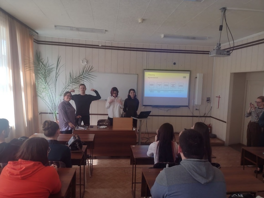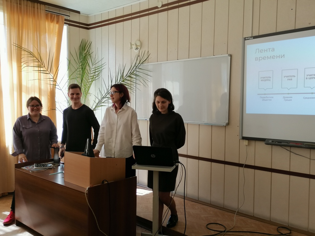 На первом этапе «Лента времени» первокурсников познакомили с историей становления профессии «Учитель» и обсудили, как она менялась с течением времени (организаторы этапа –Кристина Кантария и Елизавета Красилова).
