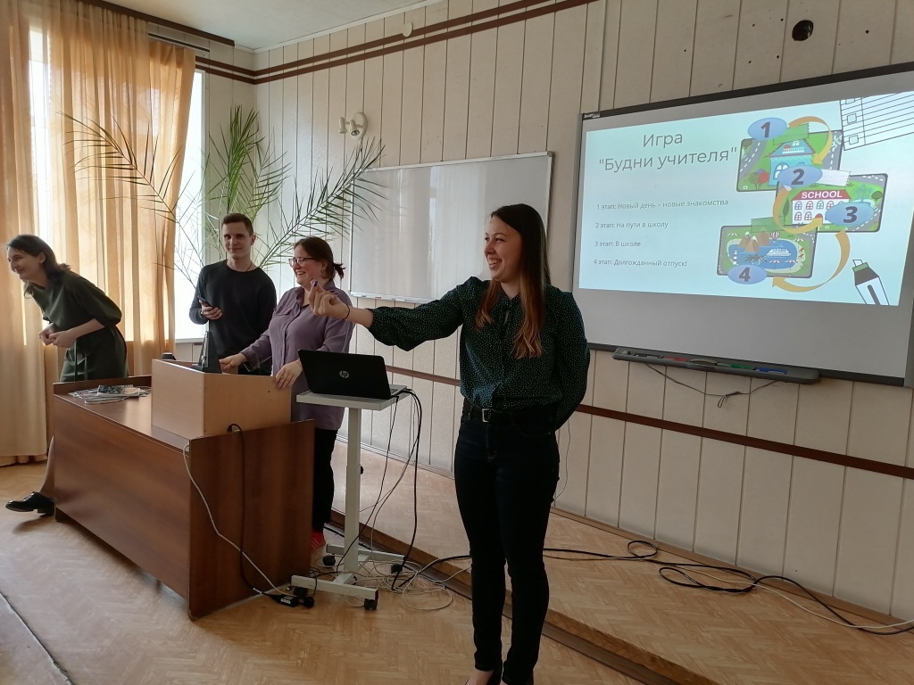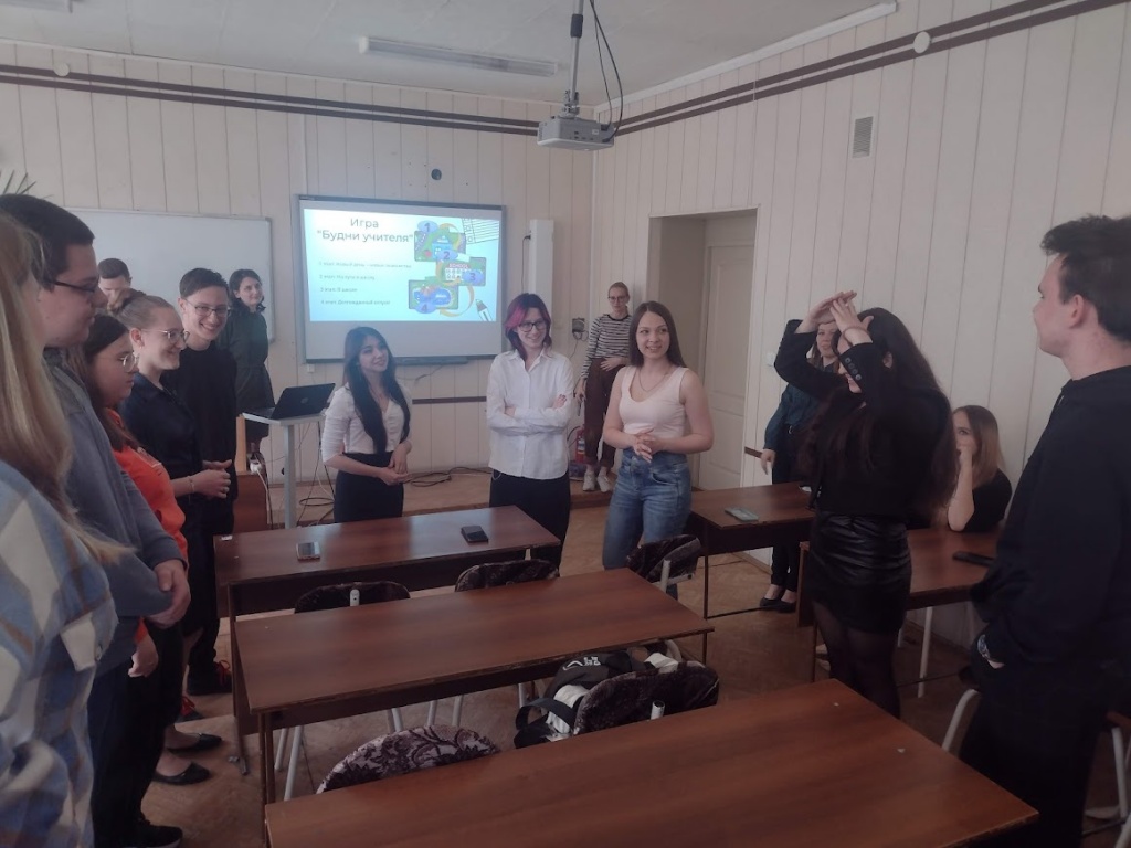 На третьем этапе первокурсники поиграли в игру «Будни учителя», в которой пережили все основные события, происходящие с учителями изо дня в день, а также побывали в роли обучающихся, учителей и администрации. Особое внимание студентов было обращено на то, какими качествами и умениями нужно обладать учителю, чтобы каждое его дело завершалось успешно (организаторы –Иван Анкудинов и Виктория Шумкова).