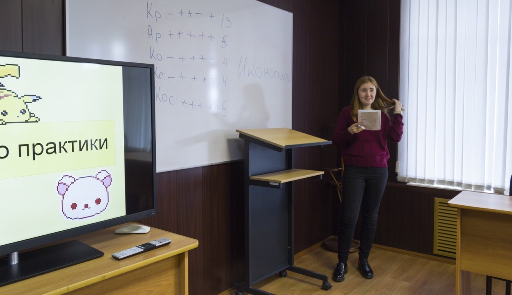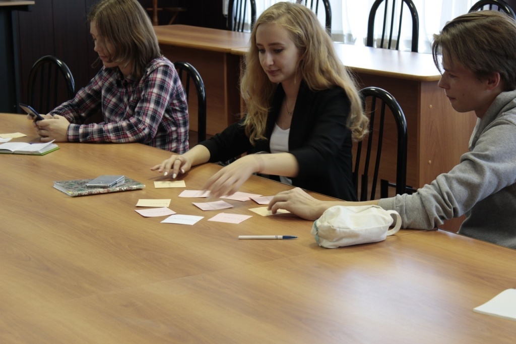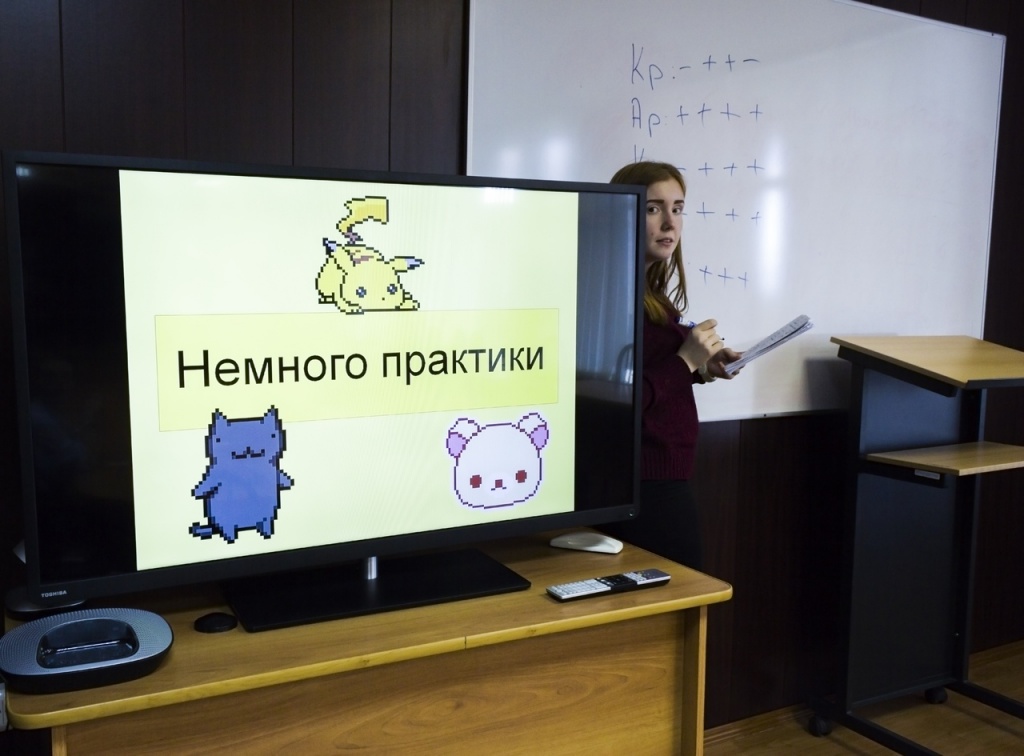 Первый мастер-класс провела студентка 1 курса ФФМК, имеющая высокие баллы по ЕГЭ, Анастасия Ильина. Тема ее занятия звучала так: «Ударения – всему голова». Девушка помогла разобраться с наиболее распространенными ошибками в произношении слов, которые встречается буквально каждый день, объяснила происхождение некоторых правил ударения и провела для ребят небольшую игру для проверки знаний. Уже в конце Анастасия призналась, что это был ее первый мастер-класс, благодаря проведению которого она получила очень много впечатлений и ничем не заменимый опыт.