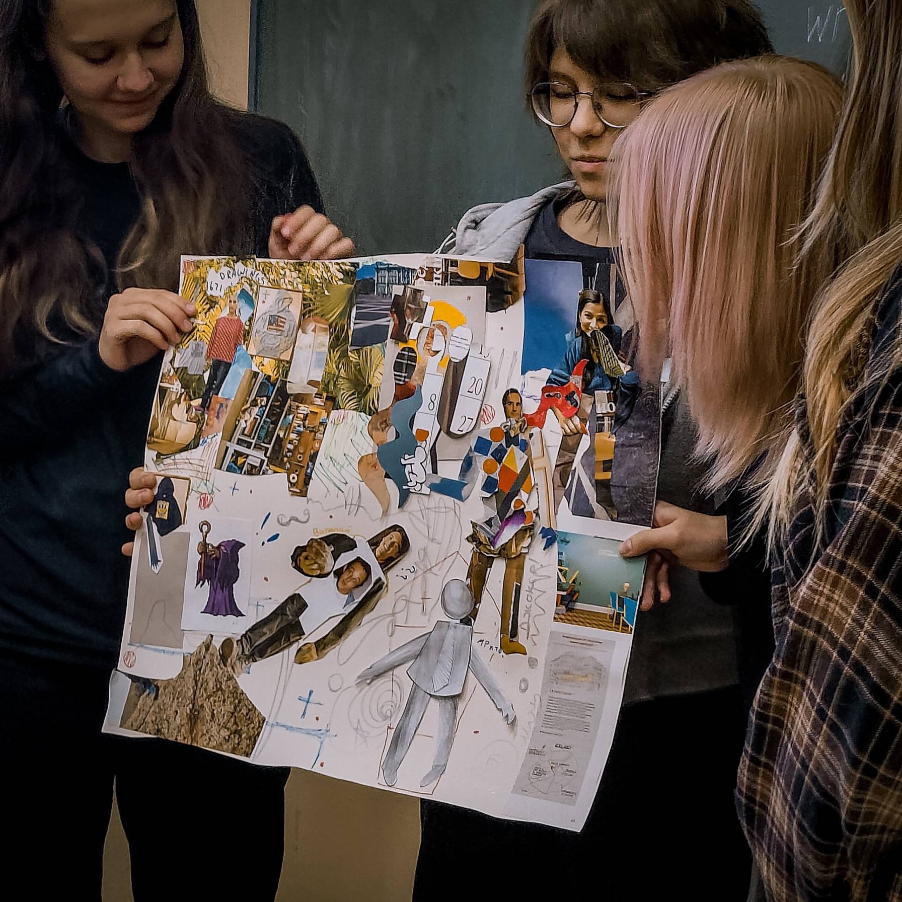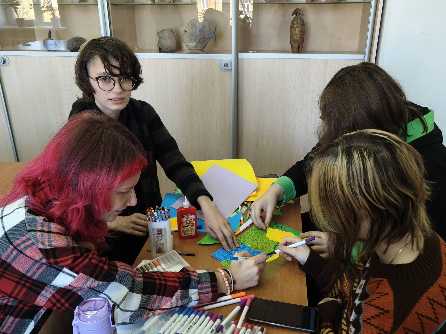Мастер-класс, посвященный направлению авангардной живописи, познакомил первокурсников с предпосылками формирования нового художественного направления. Студентам было предложено в технике коллажа создать собственных героев авангарда по мотивам фигур крестьян с полотен художника Казимира Малевича.