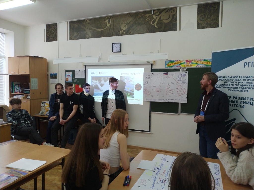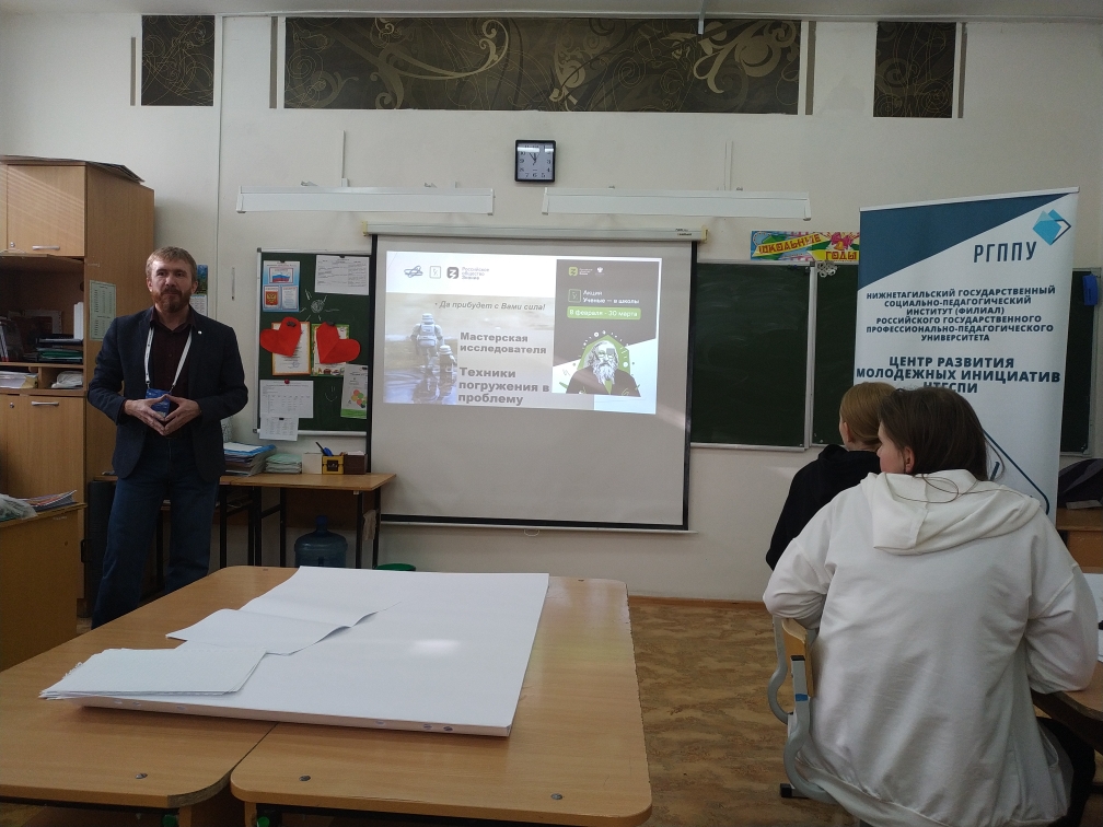 Мастерская исследователя «Техники погружения в проблему проекта» состоялась с участием учащихся 6 и 9 классов Гимназии № 18 г. Нижнего Тагила! Это стало возможным благодаря инициативе учителя Гимназии № 18 Вероники Никитичны Турчаниновой, поддержанной администрацией образовательной организации, отделом научно-исследовательской работы и активом студенческого научного объединения НТГСПИ.