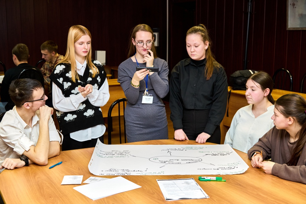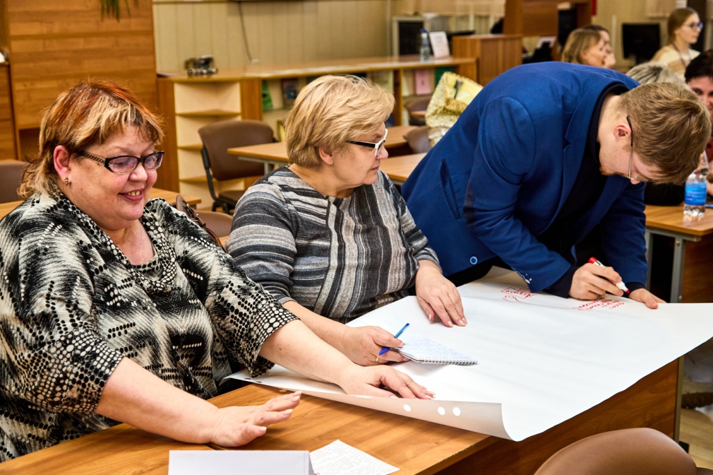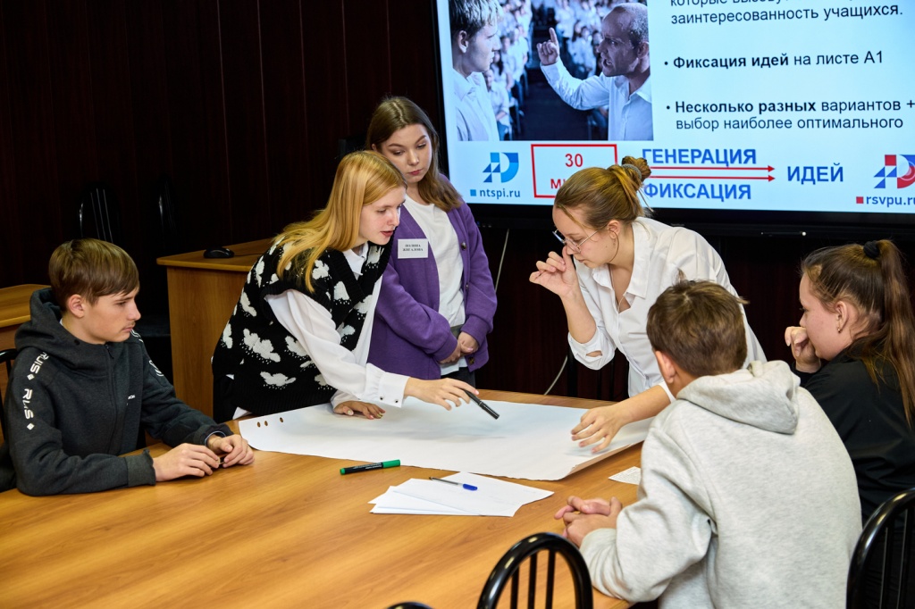 Страна, вуз и факультеты должны знать своих героев! Наставники сами прошли все процедуры освоения проектных техник и в ходе мастерской после короткого инструктажа сами повторно уже в командах школьников погрузились в процесс поиска оригинальных вариантов проведения урока.