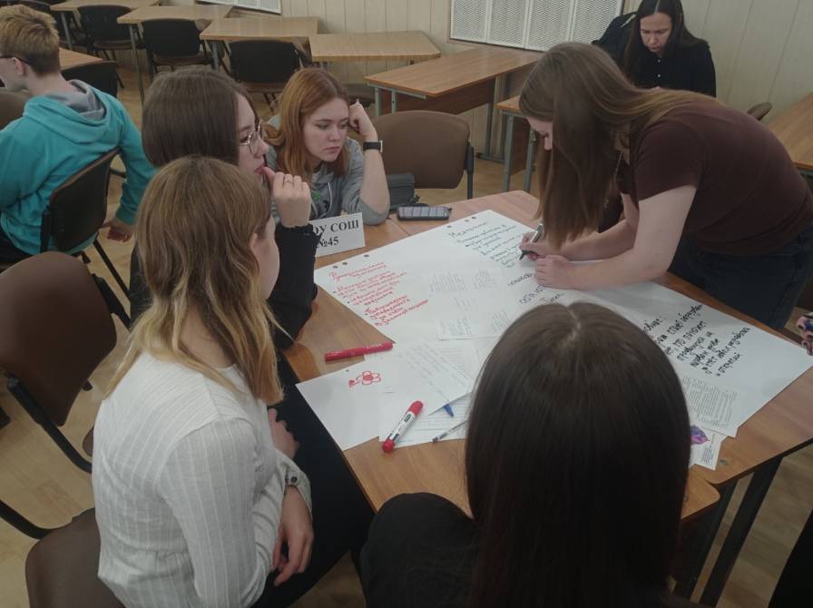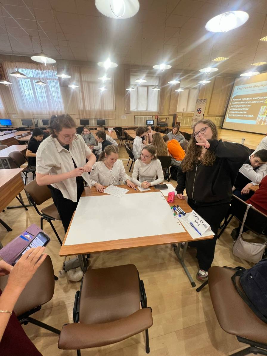 У всех команд была стартовая формулировка: «Всего 9 % выпускников профильных педагогических классов поступают на педагогические специальности вуза родного города». Далее, используя тот метод погружения, который достался команде, участники оформляли часть обоснования проблемы: контекст ее появления, важность решения данной проблемы для конкретных групп населения. Также рассматривались различные вопросы, так или иначе связанные с заявленной проблемной ситуацией. Уже через 35 минут элементы общего пазла для обоснования существующих противоречий в сфере подготовки педагогических кадров сложились в череду презентаций групповых разработок.