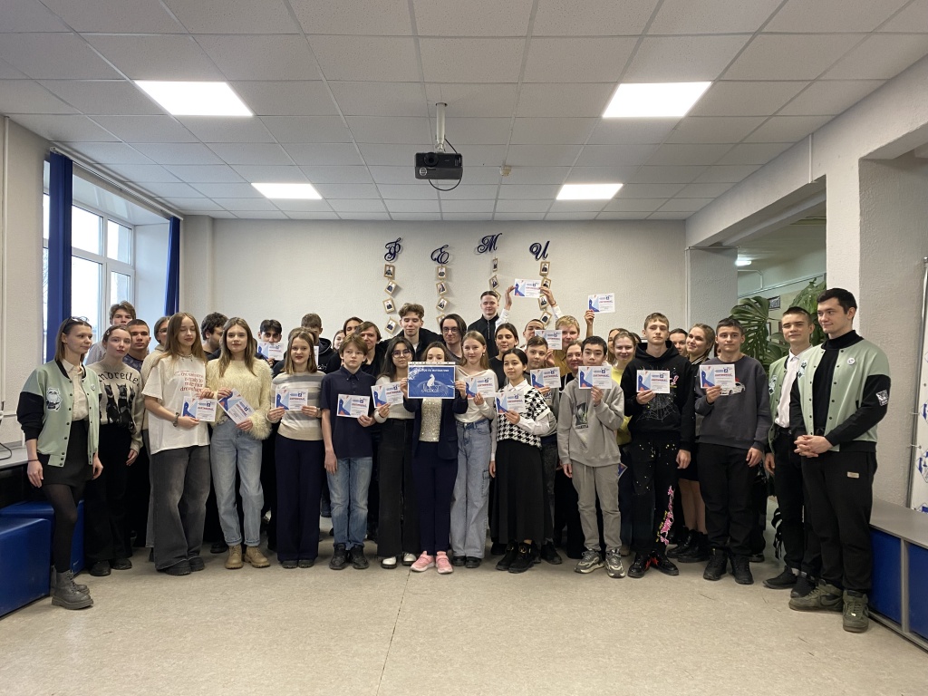 После разминки студенты-организаторы провели зажигательный флешмоб «Я люблю математику». Ребята выучили новые движения и научились быстро перестраиваться в разные геометрические фигуры. После этого все приступили к решению задач. Традиционно были предложены четыре линии: белая – самая легкая, зеленая, желтая и красная. Большинство выбрало белый и зеленый уровень. Только два человека выполняли красный уровень. В этом году у нас было образовано восемь групп, участвовавших в командном зачете.