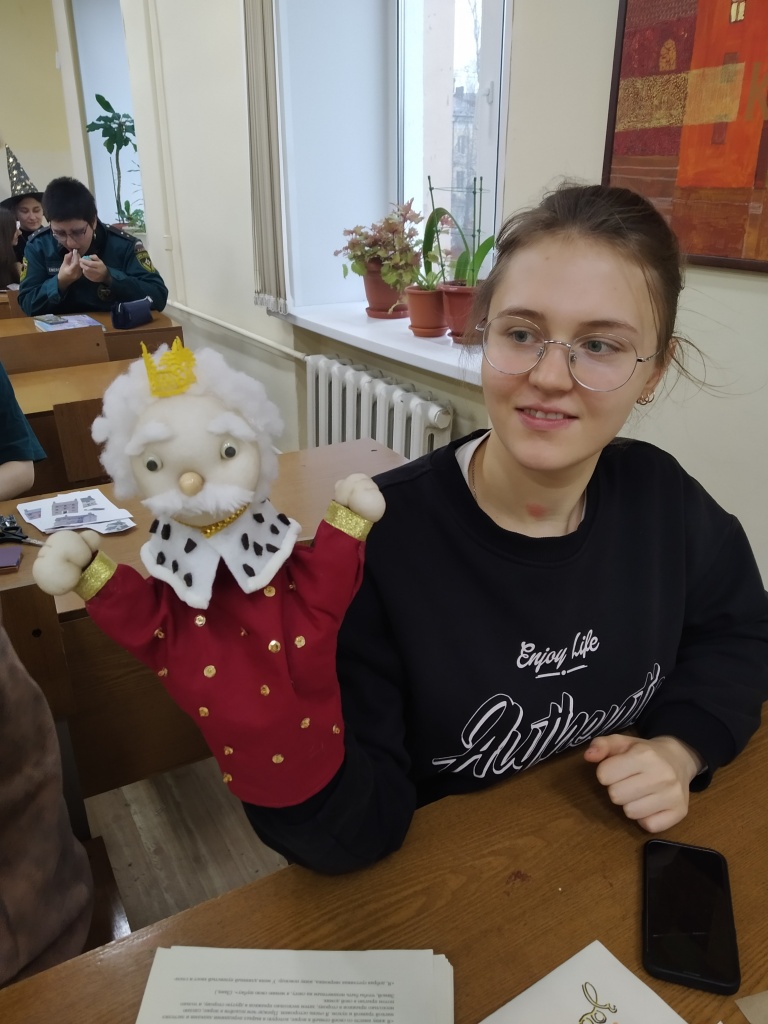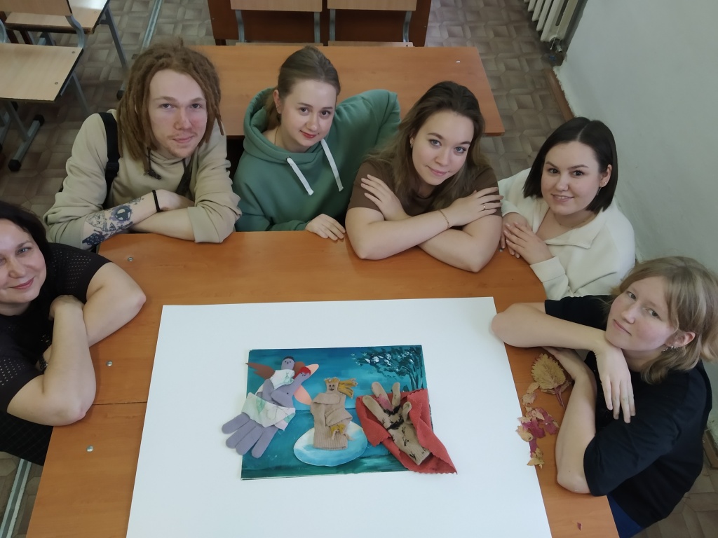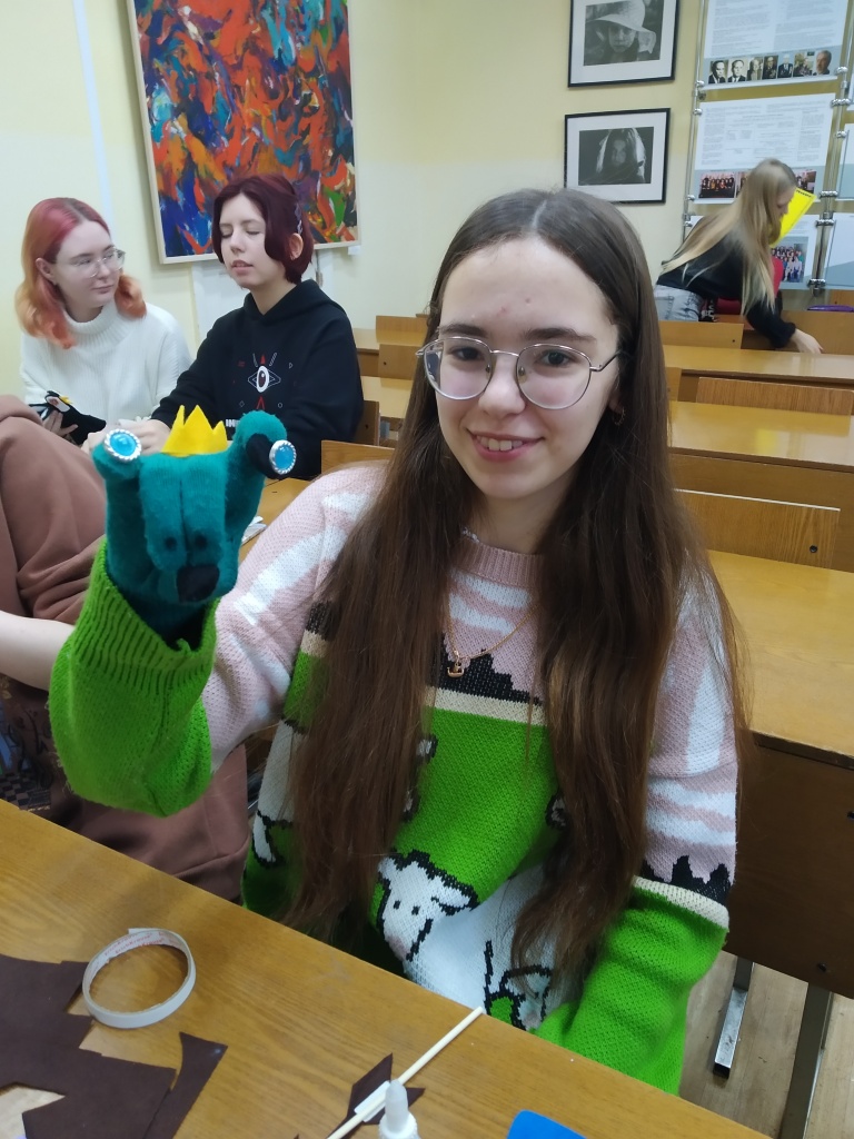 Д. О. Алексеева, искусствовед, заведующая отделом по работе с посетителями НТМИИ, провела мастер-класс по созданию театрализованной перчаточной куклы. Основа кукольных образов – русская народная сказка «Царевна-лягушка». Именно эту сказку выбрали студенты третьего курса профиля «Изобразительное искусство и дизайн» для театрализованной постановки. Итогом мастер-класса стали авторские куклы-герои любимой сказки.