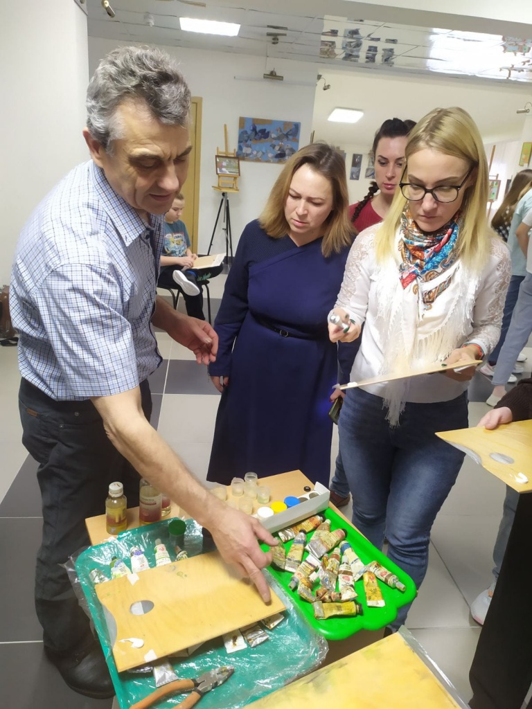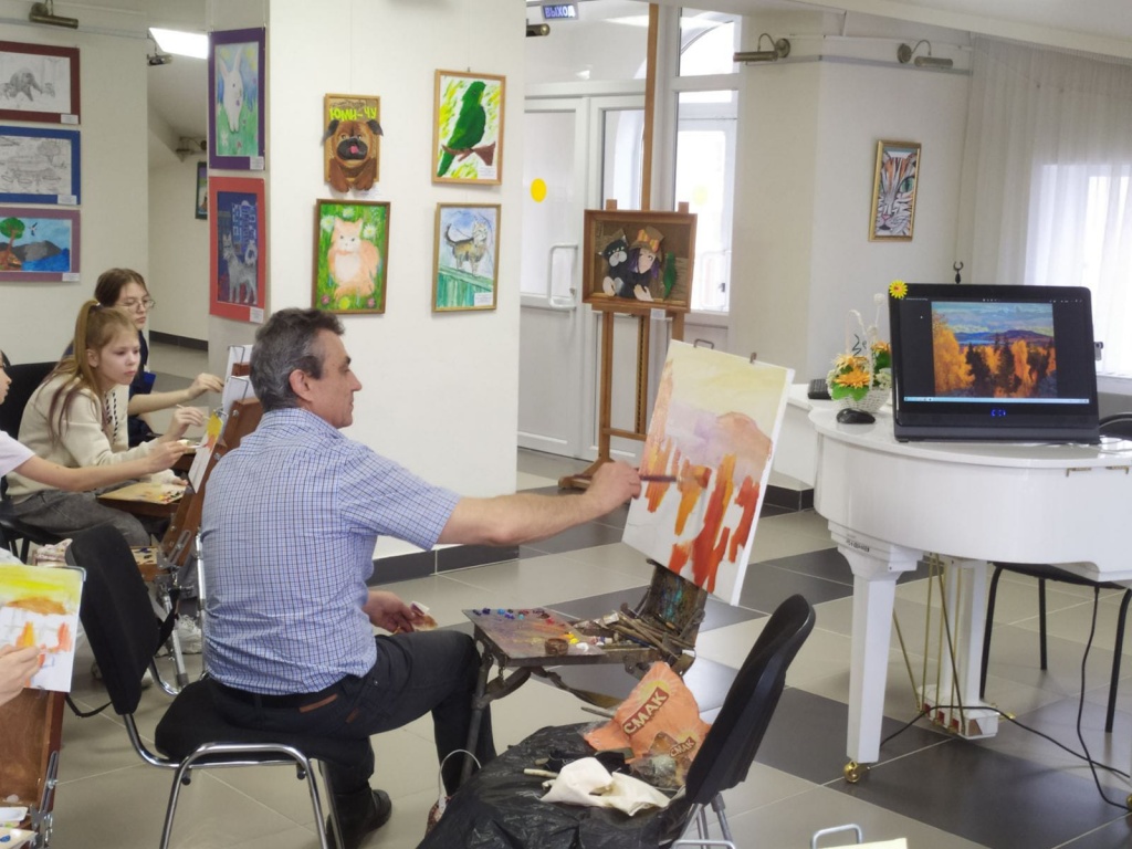 29 октября старший преподаватель кафедры Художественного образования Игорь Владимирович Грищенко провел мастер-класс для педагогов и учащихся старших классов ДХШ и ДШИ в г. Югорске. Тема мастер-класса: методика и приемы работы над пейзажем в технике масляной живописи.