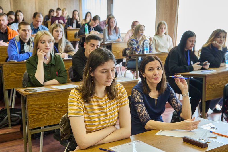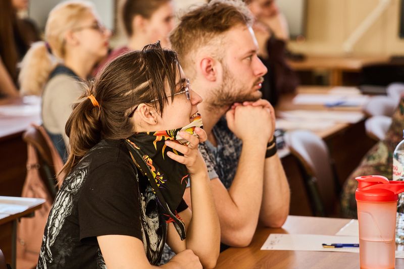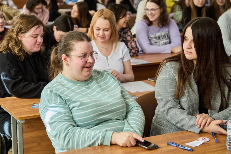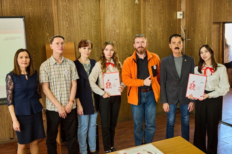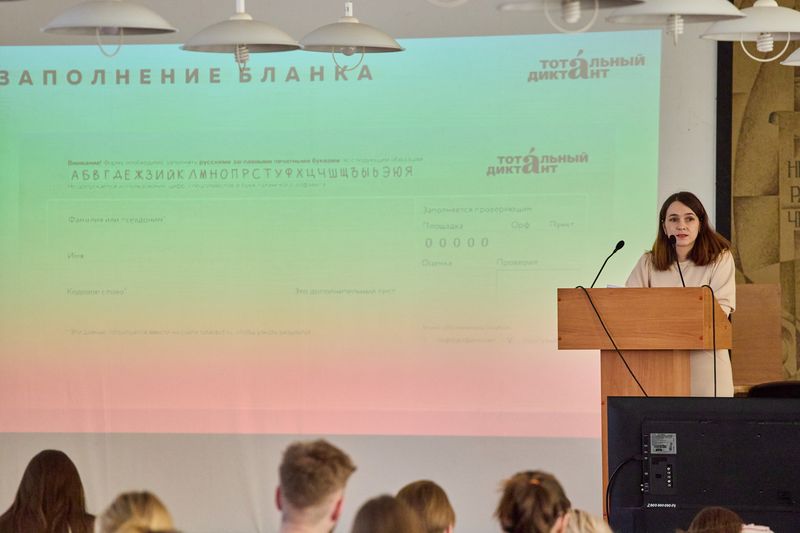 Самое активное участие в проведении «Тотального диктанта» приняли студенты всех курсов ФФМК (профили «Русский язык и литература», «Филологическое образование и дополнительное образование в сфере медиакоммуникаций», «Русский язык, литература и дополнительное образование в сфере медиакоммуникаций») под руководством кандидата филологических наук, доцента кафедры ИЯРФ Ю. А. Фоминой, ставшие незаменимыми помощниками-волонтерами на всех этапах подготовки и проведения масштабного мероприятия. Позитивное настроение помогли создать подготовленные студентами «Тотальные гадания» − предсказания в виде строчек из произведений известных русских писателей. А второкурсники разработали и провели интеллектуально-познавательный квиз «Не металлом единым…», посвященный столице «Тотального диктанта».
