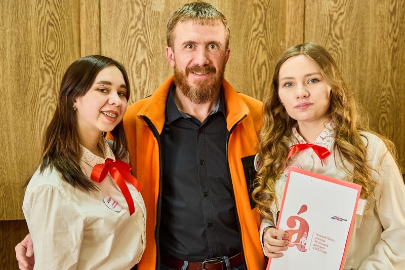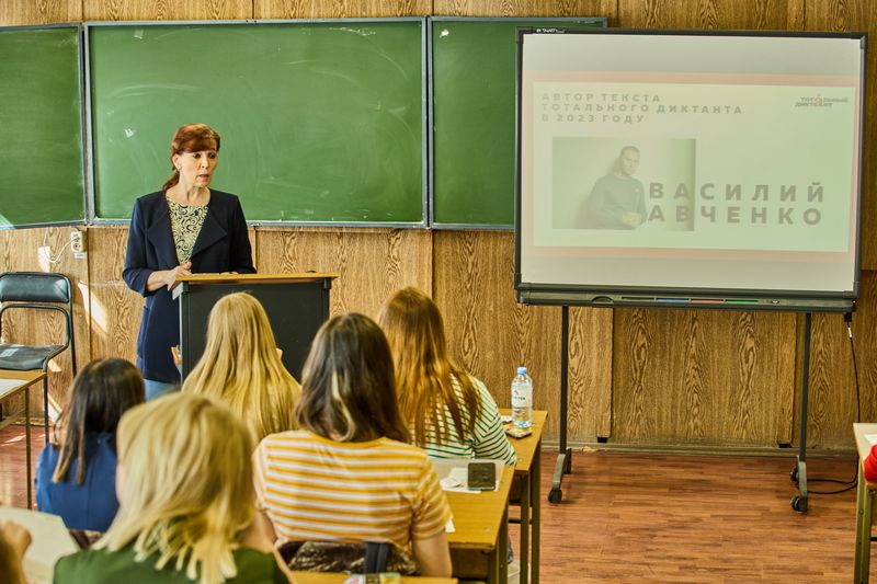 Вечером на площадку НТГСПИ поддержать проверяющих филологов приехали автор Тотального диктанта Василий Авченко и главный городской координатор Елена Сухих. Кроме общего обсуждения трудных случаев в диктанте, писатель немного рассказал о себе, своих любимых произведениях. Непринужденная, живая беседа позволила увидеть в финалисте премий «Большая книга», «Национальный бестселлер» и «НОС» просто человека – умного, тактичного, с замечательным чувством юмора.