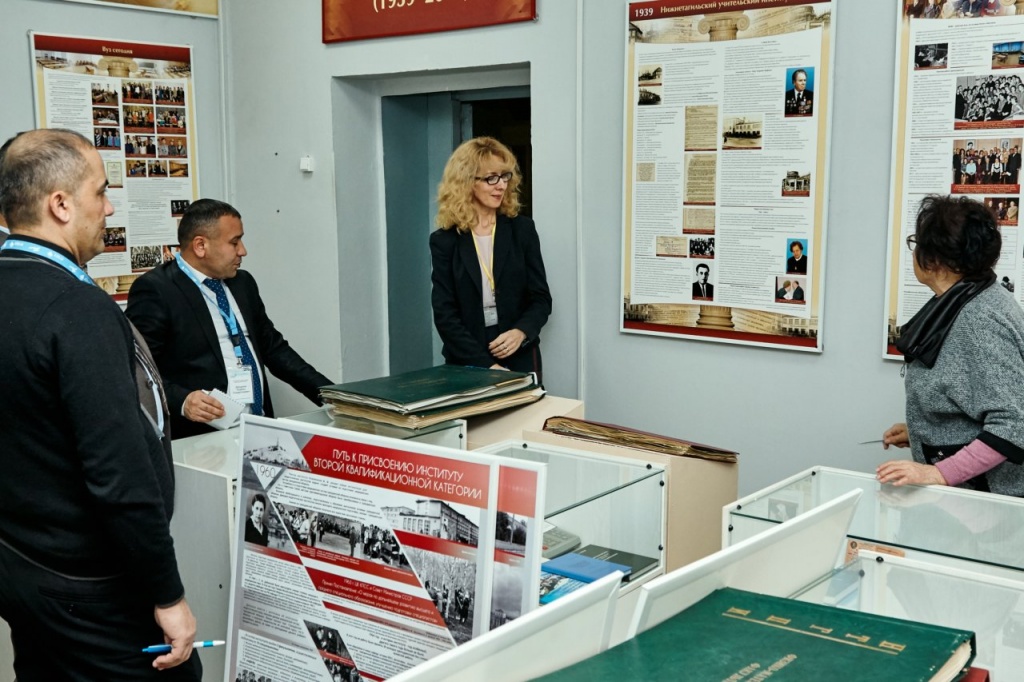 Знакомство с НТГСПИ началось с экскурсии в музей. Ахмад Рахматович поделился с нами своими впечатлениями от посещения музея: «Мы тоже хотим в своем институте открыть музей. У вас нам очень понравилось. Вообще это очень хороший подход. Ведь если вы не знаете свою историю, вы не можете формировать свое будущее. Очень многое зависит от истории».