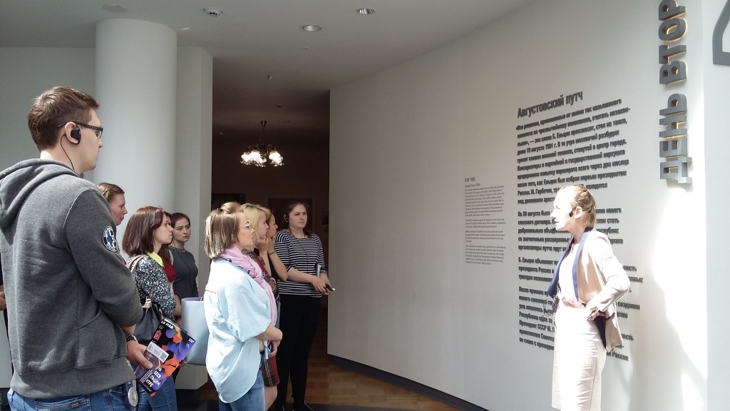 18 мая в Международный День музеев для студентов-заочников СГФ, обучающихся по профилю история, был организован выездной семинар в Ельцин центр в рамках изучения дисциплины «Музееведение и основы экскурсионного дела» (преподаватель: О. В. Рыжкова, к. ист. н., доцент кафедры ГСЭН). Сотрудники музея показали разные варианты проводимых в музее экскурсий: обзорной, тематической, методической, познакомили с содержанием работы различных служб музея, информационной и сувенирной продукцией, а в завершение пригласили для прохождения музейной практики. Студенты по достоинству оценили экспозиционное, техническое, художественное оснащение музея, его безграничные культурно-образовательные возможности. Общее впечатление можно выразить словами: «Таким должен быть музей XXI века!» На основе полученных впечатлений студентам предстоит выполнить пакет творческих заданий для портфолио по изучаемой дисциплине. На обратном пути посчастливилось встретиться сН. И. Ельциной, вдовой первого президента РФ, прибывшей в Ельцин центр на музейный праздник. Кстати, по случаю праздника вход в музей был бесплатным.