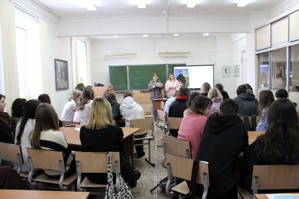 Лекторий о великом мастере и его бессмертных шедеврах провели студентки 5 курса профиля «Музыка и МХК» Александра Мачуженко и Анастасия Николаева. Говорили не только о нюансах творческой биографии Микеланджело, но и о его влиянии на искусство последующих столетий. Не остался без внимания и образ художника, запечатленный в художественном слове (в лирике Ф. И. Тютчева, Р. М. Рильке, Д. С. Мережковского, О. Э. Мандельштама, У. Б. Йейтса), а также его собственное поэтическое наследие.