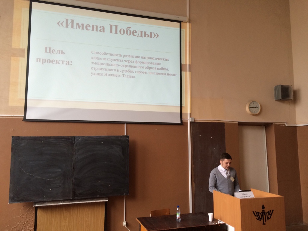 Конкурс проходил на трех площадках: «Мы – местному сообществу», «Жизнь университета» и «Планета детства». Студенты нашего вуза представили 4 проекта, каждый из которых был отмечен жюри и получил положительную экспертную оценку. Программа конкурса предусматривала не только публичную защиту студенческих проектов, но и разноплановые мастер-классы, на которых участники получили опыт социального проектирования, познакомились с перспективными направлениями, получили рекомендации от экспертов по медиапродвижению проектов и получению грантов для их развития. Бесценный практический опыт участники получили на мастер-классе «Система грантовой поддержки молодежных патриотических проектов», который интересно и продуктивно провел И. А. Попп, инициатор и разработчик проекта «Живая история». Неизгладимое впечатление на участников произвел фильм «1945. Спасибо за Победу», созданный в рамках проекта «Живая история».