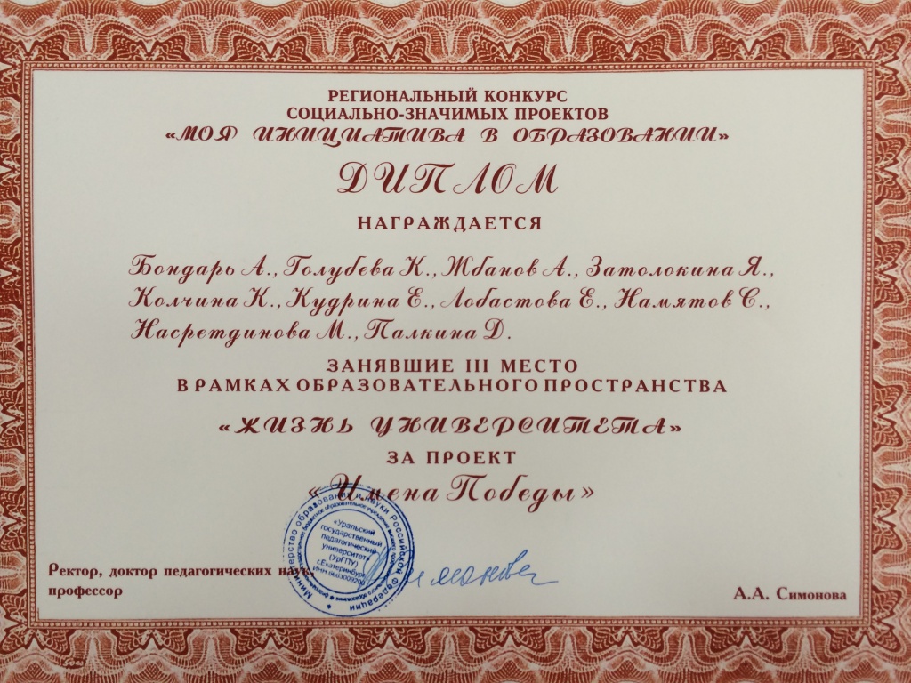 Участники конкурса выражают благодарность директору филиала РГППУ в г. Нижнем Тагиле Л. Е. Егоровой за поддержку молодежных инициатив и возможность участия в таком значимом и интересном мероприятии.