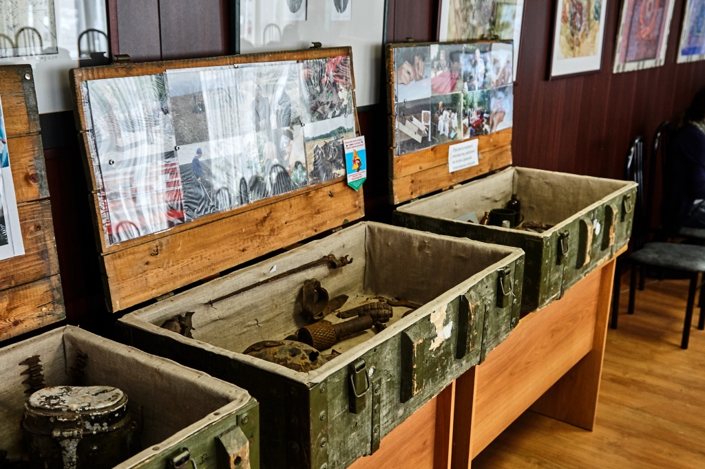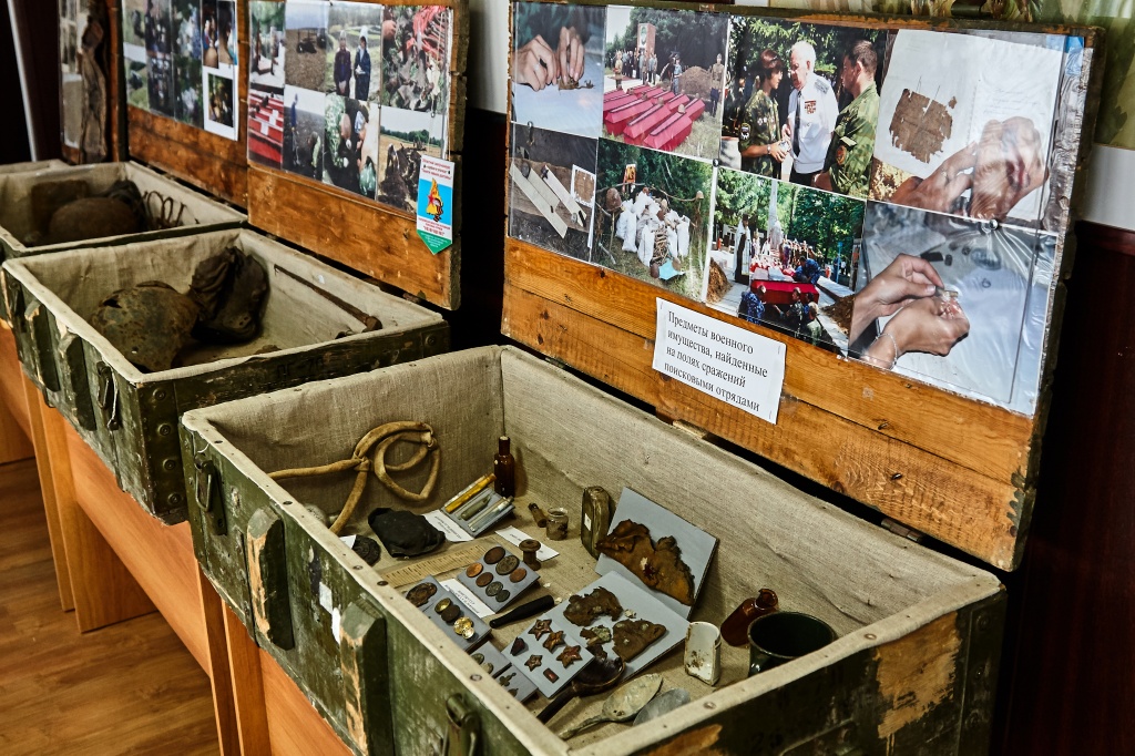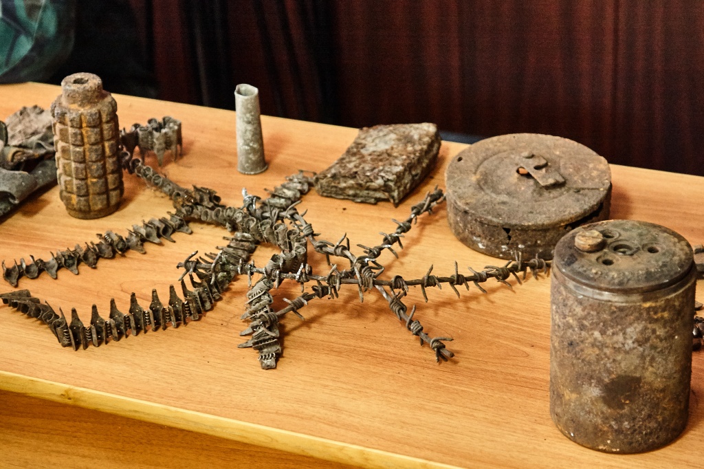 Презентация была снабжена фотоматериалами, а также выставкой артефактов, найденных членами «Соболя» в результате археологических раскопок на «Вахтах памяти».