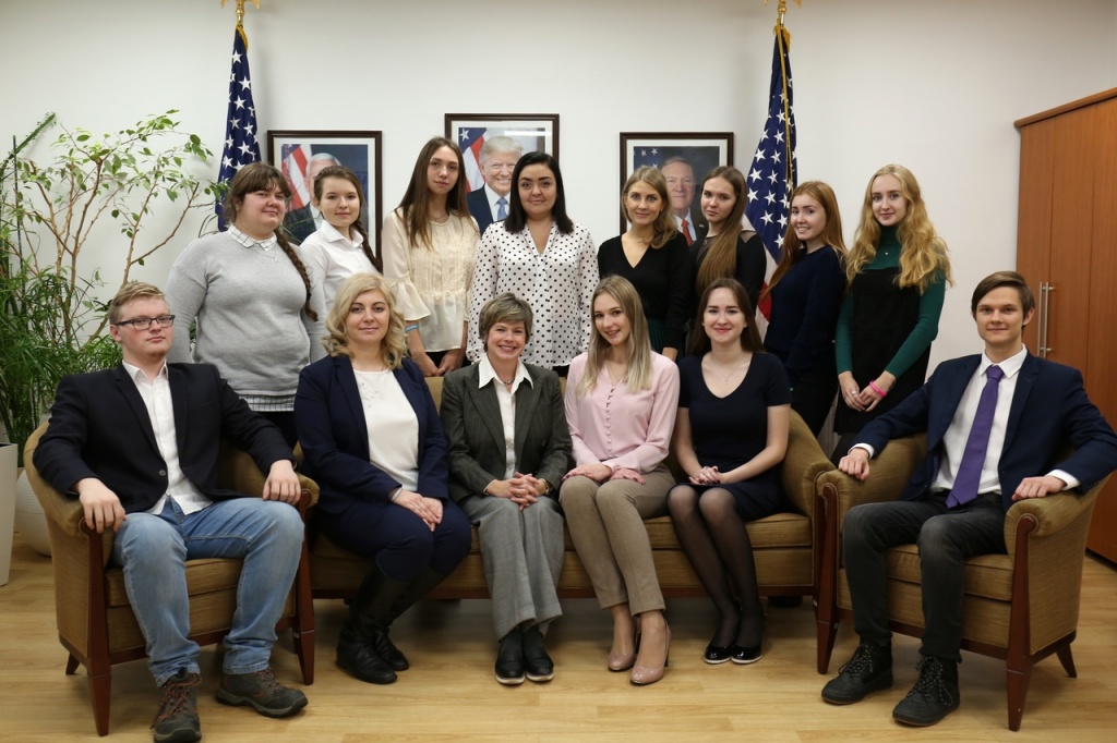 По возвращении в консульство участников ждала Хайди Эванс – консул по политическим и экономическим вопросам. За пару дней до поездки в консульство она дала задание приготовить проект поездки нового посла США по городам России. Все участники подготовили необычные и интересные туры, которые знакомили с культурой нашей страны. Хайди с увлечением слушала все проекты и на протяжении всех рассказов подбадривала выступающих. После общения с консулом по политическим и экономическим вопросам абсолютно все остались в хорошем настроении, ведь она смогла вдохновить ребят на новые свершения.