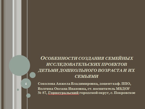 Об особенностях создания семейных исследовательских проектов детьми дошкольного возраста и их семьями рассказали доцент каф. ППО Анжела Владимировна Соколова и старший воспитатель Оксана Ивановна Волгина. Также они анонсировали информацию о муниципальном конкурсе семейных исследовательских проектов по здоровому образу жизни «Маленькие открытия».