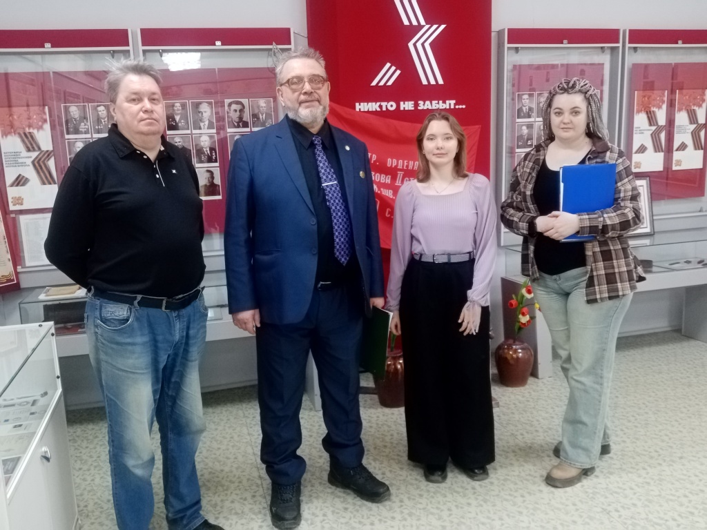 28 марта музей НТГСПИ принял участие в городском музейном смотре-конкурсе музеев организаций профобразования, посвященном празднованию 80-летия Победы в Великой Отечественной войне. Студентка первого курса социально-гуманитарного факультета Полина Смолякова представила на суд компетентного жюри рассказ о музейном предмете – фронтовом дневнике ветерана нашего вуза, участника Великой Отечественной войны Василия Викуловича Абрамова.