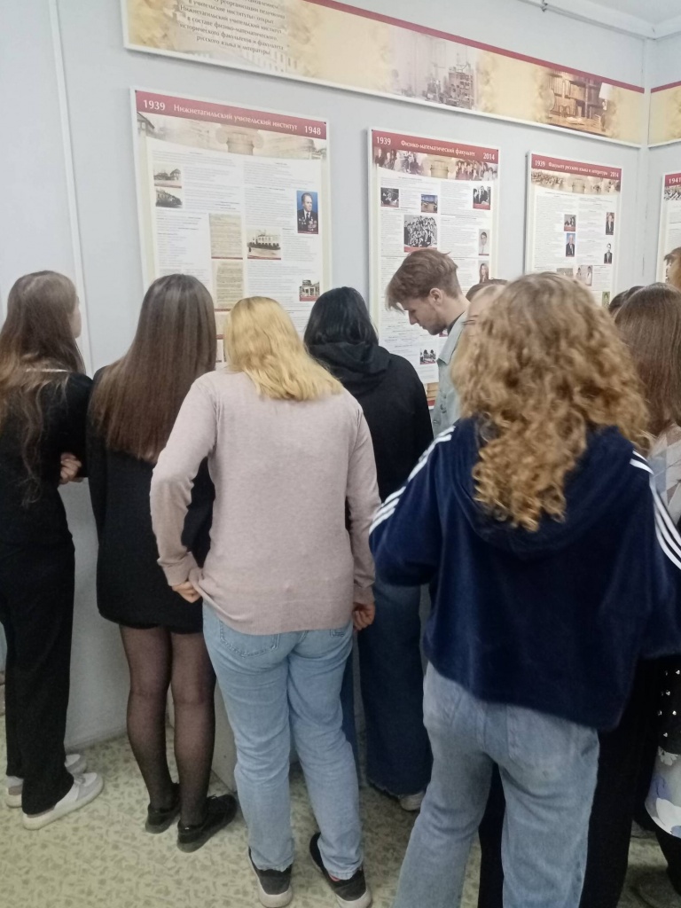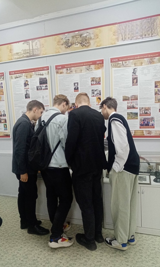 26 сентября студенты 1 курса СГФ профиля «История и обществознание» посетили обзорную экскурсию «История вуза за 80 лет». Будущие учителя истории и обществознания познакомились с историей становления и развития нашего института. Очень важным моментом экскурсии было обращение к музейным экспонатам, репрезентирующим важнейшие события прошлого. Экспонаты, являющиеся одновременно и историческими источниками, – важный элемент исторического образования. Умение работать с источником (атрибутировать и критически к нему подходить) – необходимый навык для учителя истории. Исторический источник, ставший музейным экспонатом, может очень многое рассказать о рассматриваемом событии, главное – помогает умело к нему подойти.