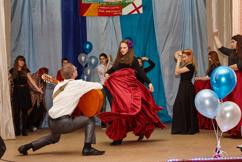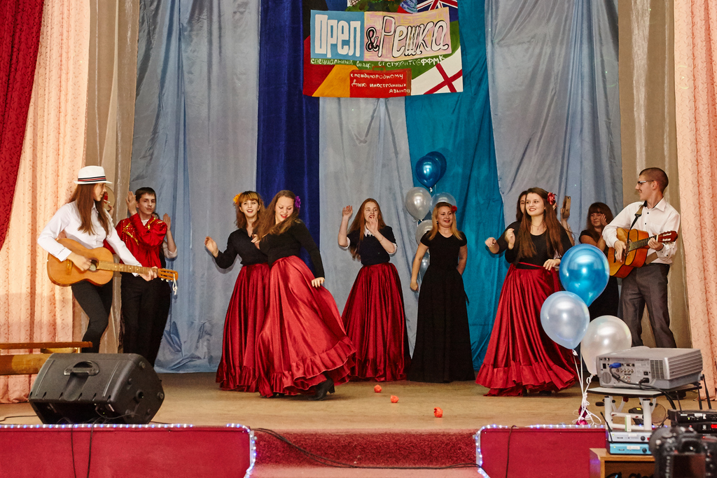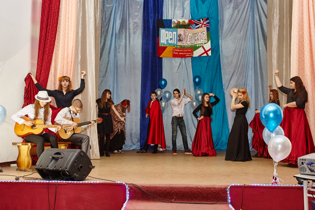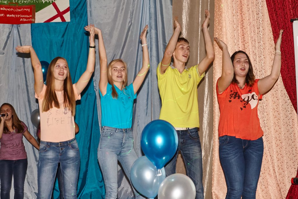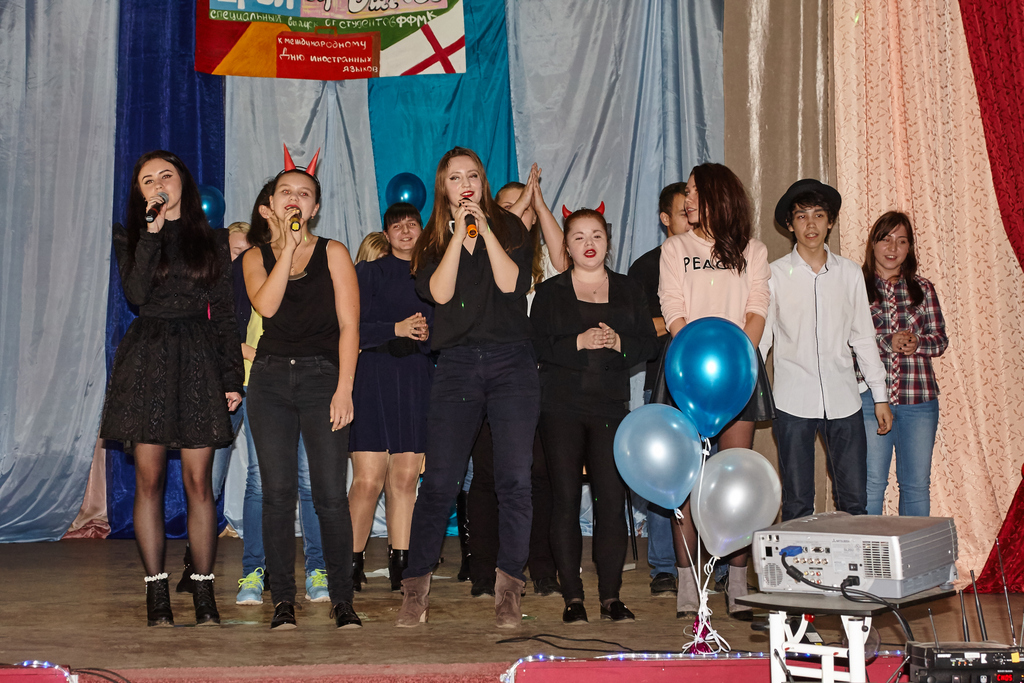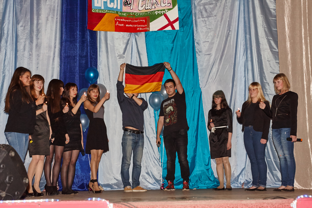 25 сентября в актовом зале прошёл праздничный концерт, посвящённый международному Дню иностранных языков. Праздник был подготовлен силами студентов факультета филологии и массовых коммуникаций. Зрители побывали в настоящем кругосветном путешествии, узнали много нового о языках и достопримечательностях разных стран. Участники концерта пригласили гостей в Испанию, Японию, Германию, Ирландию, Индию и многие другие страны мира. Яркие выступления, погружение в атмосферу национального колорита, буйство красок – всё это День иностранных языков – 2015! По традиции, с заключительным словом выступил декан ФФМК Олег Фёдорович Родин, который подчеркнул исключительную важность изучения языков для современного образованного человека. Основную идею праздника можно выразить словами из песни, исполненной ребятами группы 11 А «We must stand together!». Действительно, на каком бы языке мы ни говорили, мы – одна семья и должны общими усилиями поддерживать мир во всём мире!
