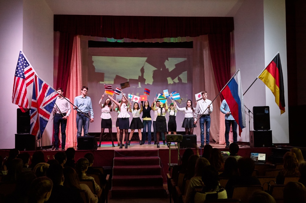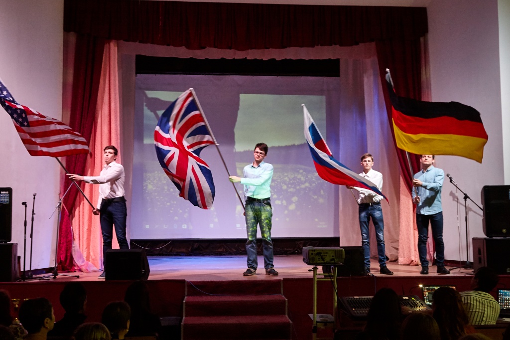 в актовом зале (секция «АНГЛИЙСКИЙ ЯЗЫК», председатель жюри – канд. пед. наук, доцент И. Е. Шкабара);