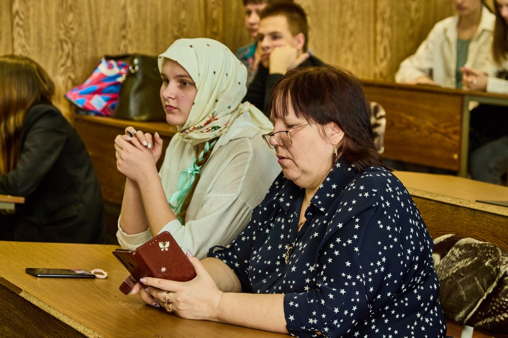 – в актовом зале (секция «Английский язык» для учащихся 10–11 кл., председатель жюри – канд. пед. наук, доцент И. Е. Шкабара);
