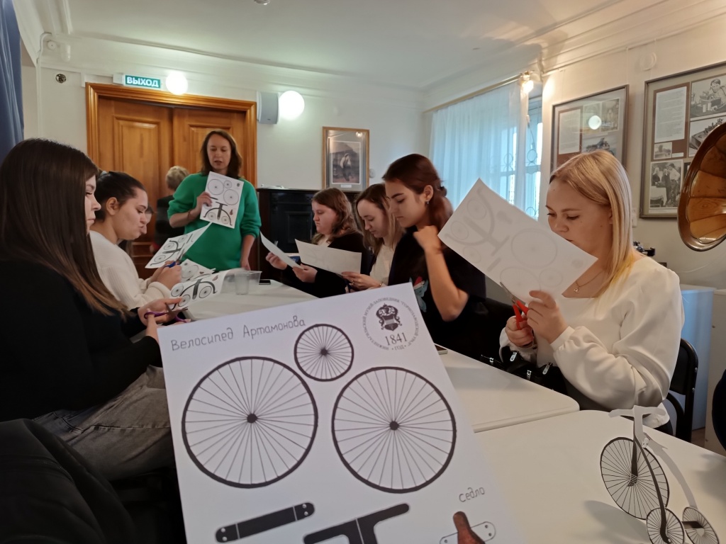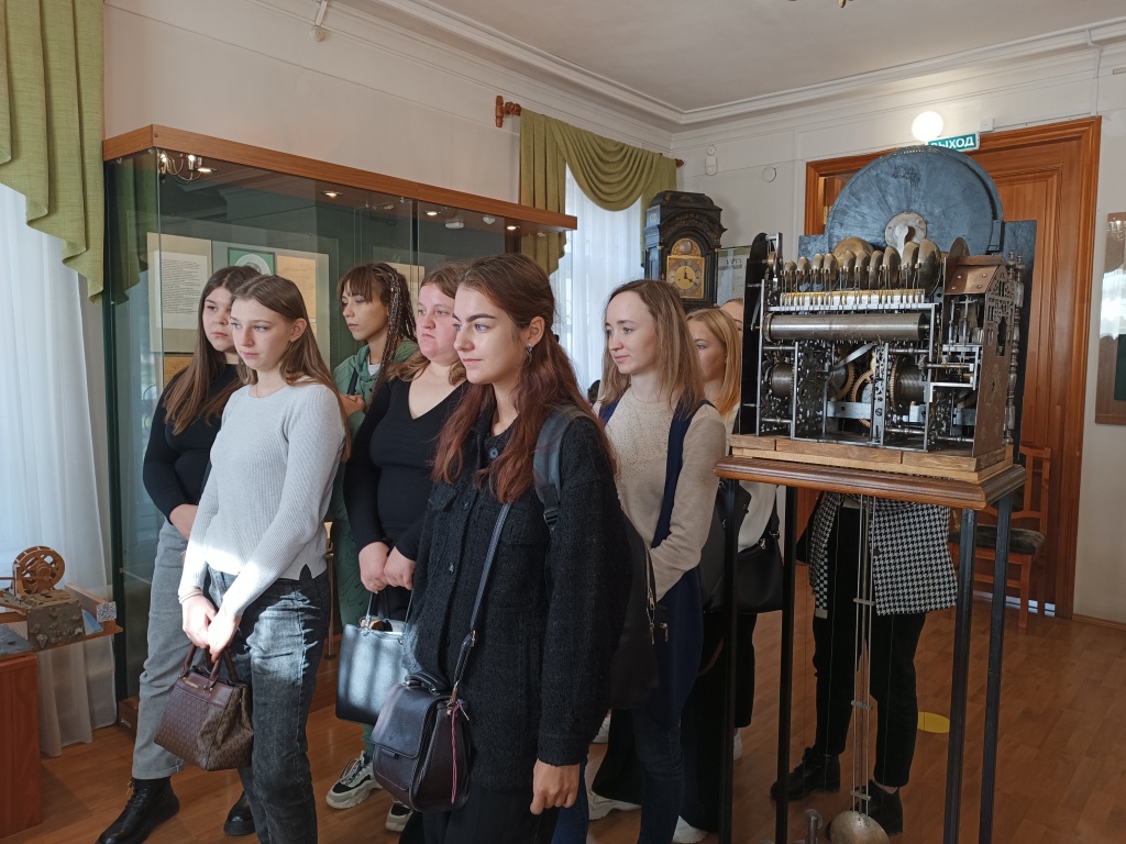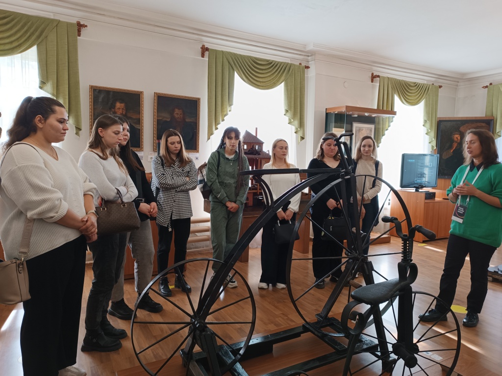 Студенты группы Нт-406о НЛО смогли увидеть уникальные астрономические часы Е. Г. Кузнецова, серебряную вазу – подарок изобретателю паровых машин Е. А. Черепанову от заводчиков Демидовых, велосипед XIX века и даже на практике попробовали собрать этот велосипед из шаблона.