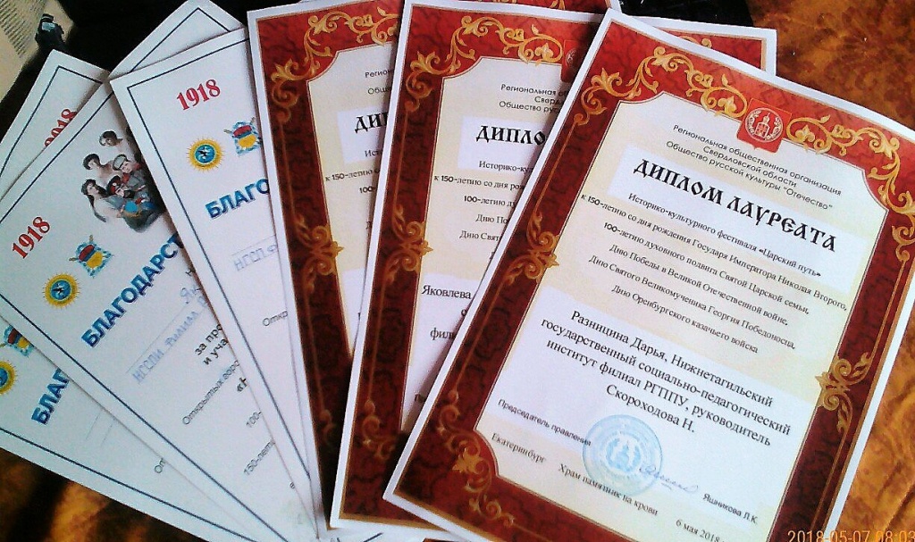 Наши студенты (под руководством старшего преподавателя кафедры ТХО Н.В.Скороходовой) стали Лауреатами историко-культурного фестиваля «Царский путь», проведенного региональной общественной организацией Общество русской культуры «Отечество» на базе Храма-Памятника на Крови во имя Всех святых в земле Российской просиявших.