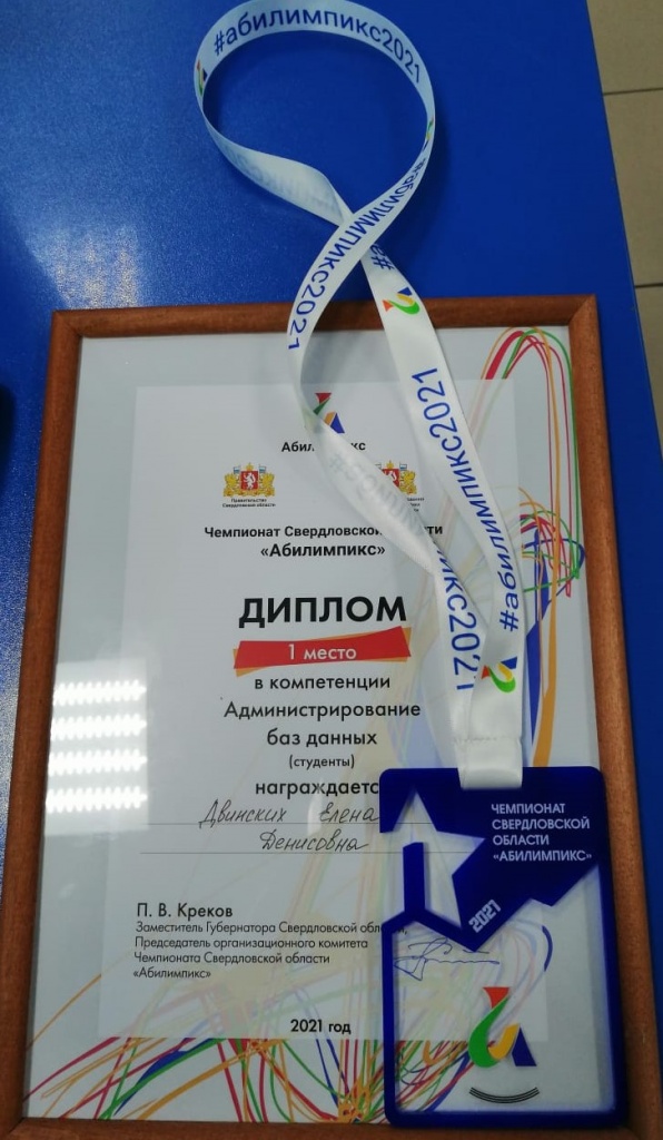 Елена, осваивая профессию учителя математики и информатики, выбрала не самую простую компетенцию «Администрирование баз данных». Подготовку к конкурсу она начала за несколько месяцев, решая практически ежедневно огромное количество подобных и более сложных заданий. Соревнование длилось четыре часа, за которые нужно было успеть создать базу данных, выполнить импорт данных, оформить удобные формы для ввода информации, создать множество сложнейших запросов и отчетов. Несмотря на проделанный титанический труд, во время соревнований, в условиях жесткой конкуренции очень сложно бывает сдержать волнение, сосредоточиться и найти альтернативное решение, если отработанные приемы не дают результата. Но наша участница хоть и не сразу, но сумела побороть страх, волнение и показать уровень своего мастерства в полной мере. В итоге Елена оказалась единственной участницей, решившей все задания в отведенное время и по праву занявшей 1-е место. Она ни в чем не уступила даже более здоровым участникам, показав практически стопроцентный результат.