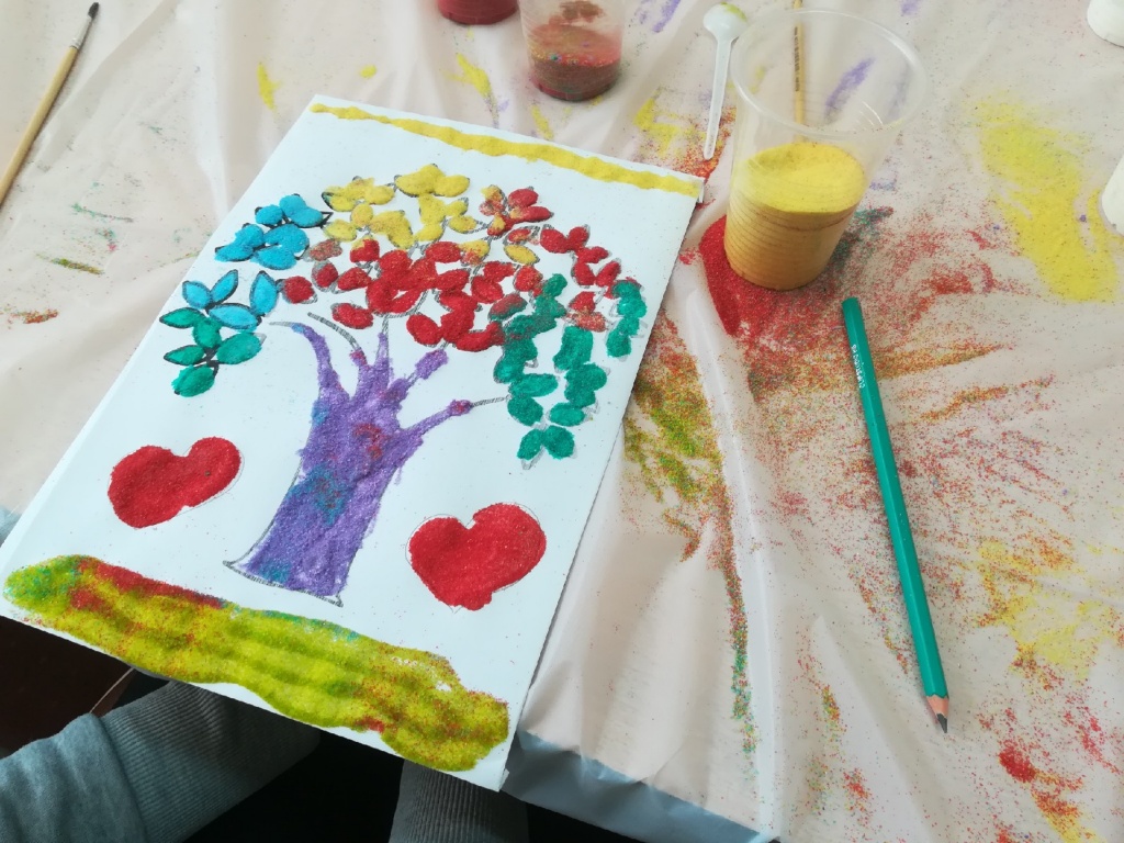 Вместе с воспитанниками, проживающими в Центре, студентами была реализована серия арт-терапевтических занятий, направленных на коррекцию и развитие эмоциональной сферы «Рисуем настроение». Главной терапевтической технологией студентами была выбрана песочная терапия.