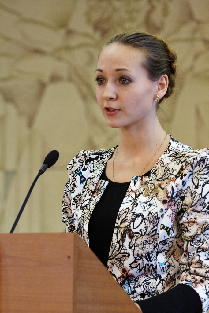Доклады представителей муниципалитетов были гармонично «разбавлены» выступлениями наших студентов. Так, Е.А. Сивкова (студентка 2 курса СГФ, специальность «История») представила доклад на тему «Из истории создания первых архивных учреждений на Среднем Урале (1918 – начало 1920-х гг.)».