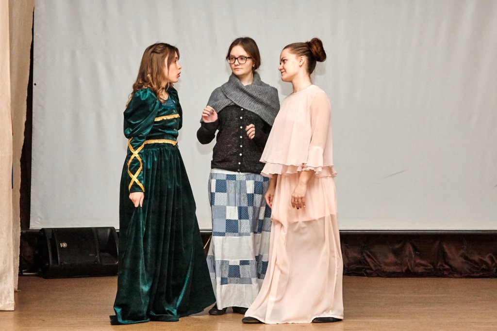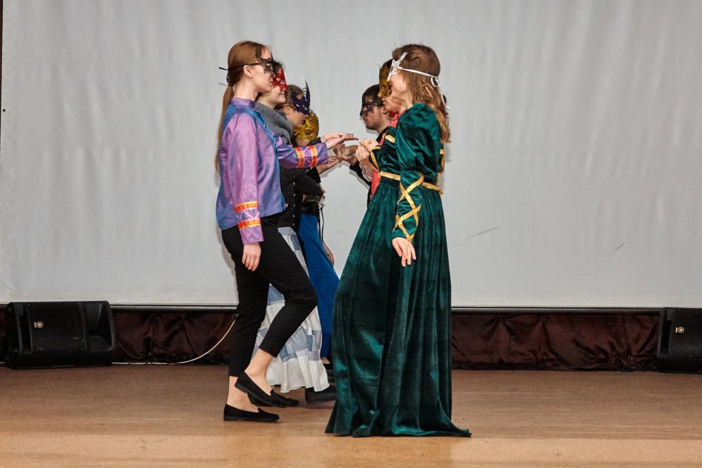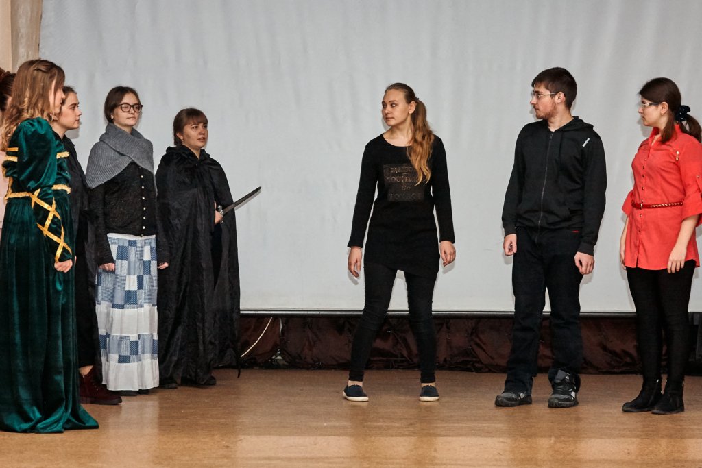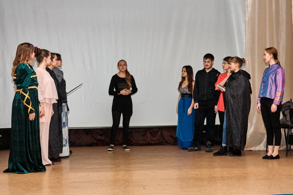 На прошлой неделе в актовом зале НТГСПИ прошел мюзикл по сюжету пьесы У. Шекспира «Ромео и Джульетта». Незадолго до этого второкурсникам ФФМК (направление «русский язык и литература») в рамках изучения дисциплины «Зарубежная литература» было предложено разыграть отрывок по любому изученному произведению. Ребята с большим интересом и творчески подошли к заданию и создали целый мюзикл! Для своей постановки филологи выбрали историю враждующих семей Монтекки и Капулетти, дети которых любили друг друга вопреки всем обстоятельствам. Студенты сами готовили декорации и костюмы, управляли световым и музыкальным оборудованием, исполняли все роли. Подготовка к мюзиклу проходила под руководством доцента кафедры филологического образования и массовых коммуникаций Галины Анатольевны Авдеевой.