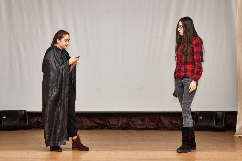 Второкурсники очень волновались, но получили много приятных эмоций и в процессе подготовки, и в ходе итогового выступления. Каждый из ребят прожил на сцене роль своего персонажа, а все вместе они рассказали зрителю маленькую историю. После выступления артисты поделились своими эмоциями и впечатлениями: