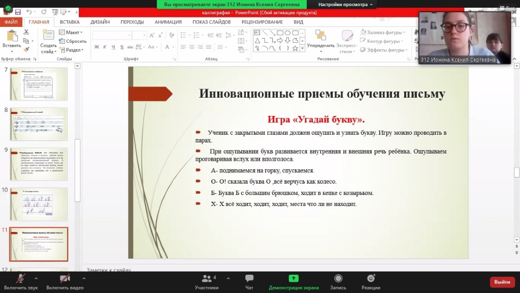 Мария Кислухина (3 курс ШГПУ) и Александра Манакова (4 курс) раскрывали в своих работах традиционные и инновационные приемы обучения детей письму. Несмотря на схожую тематику выступлений, девушки показали обсуждаемый предмет с разных сторон. Это в очередной раз доказывает, насколько многосторонней является педагогика.