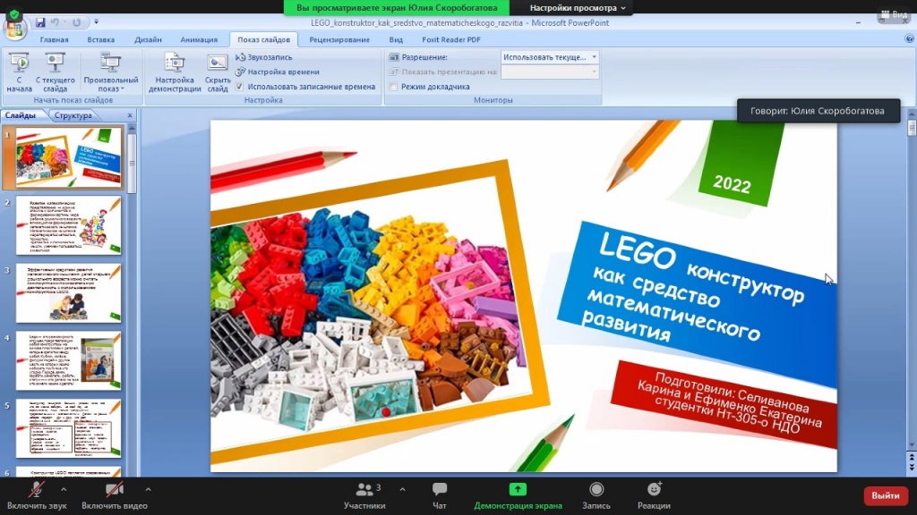 Полина Маханек и Карина Хафизова (4 курс ФППО) представили игровые приемы работы со словом. Екатерина Парилова (3 курс ШГПУ) подготовила сообщение об основных видах каллиграфических ошибок, причинах их возникновения и действенных способах устранения. Довольно необычной оказалась тема у Карины Селивановой и Екатерины Ефименко (3 курс). Девушки решили рассказать о LEGO-конструкторе как средстве математического развития.